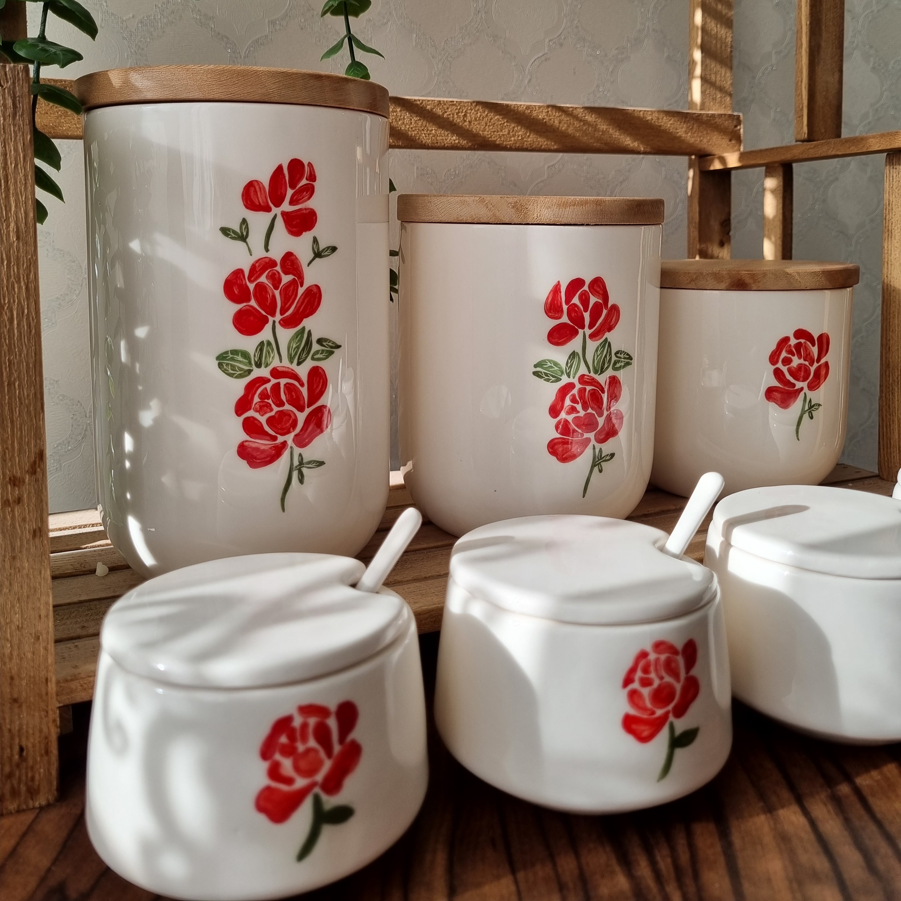 ست پاسماوری سه تایی و جاادویه گل قرمز با در چوبی مبلمونسرا مدل 288246