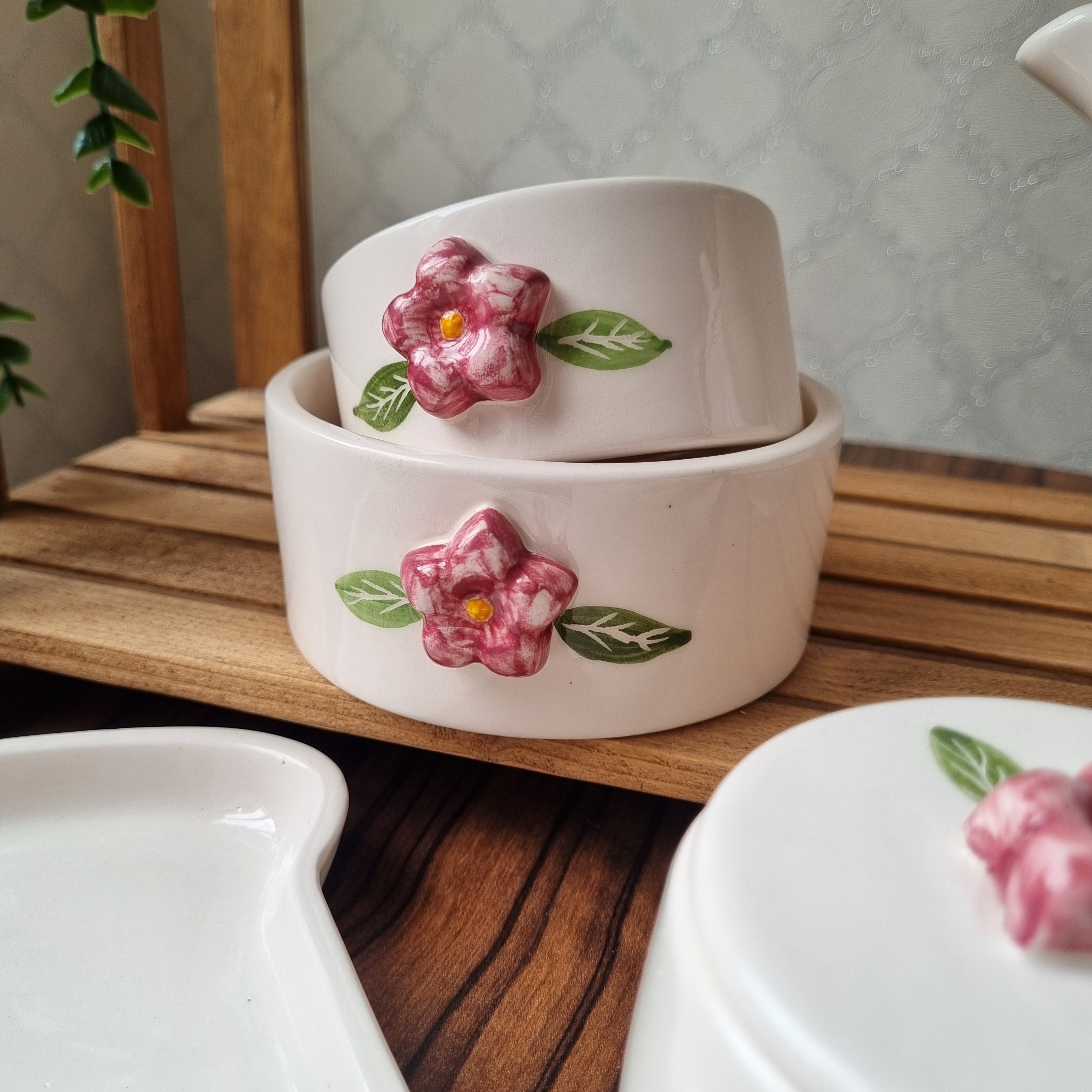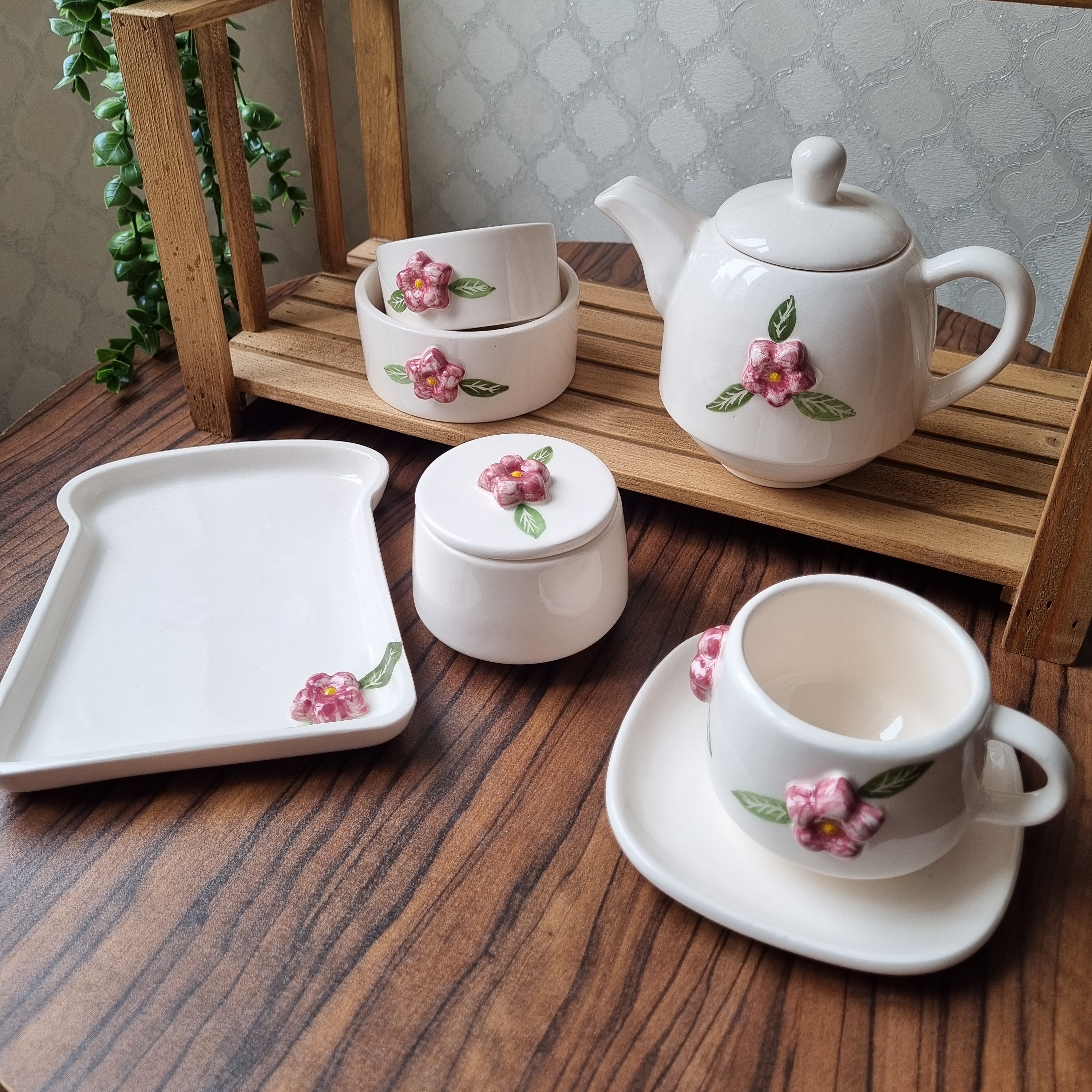 ست صبحانه خوری سرامیکی گل برجسته صورتی مبلمونسرا مدل 290966