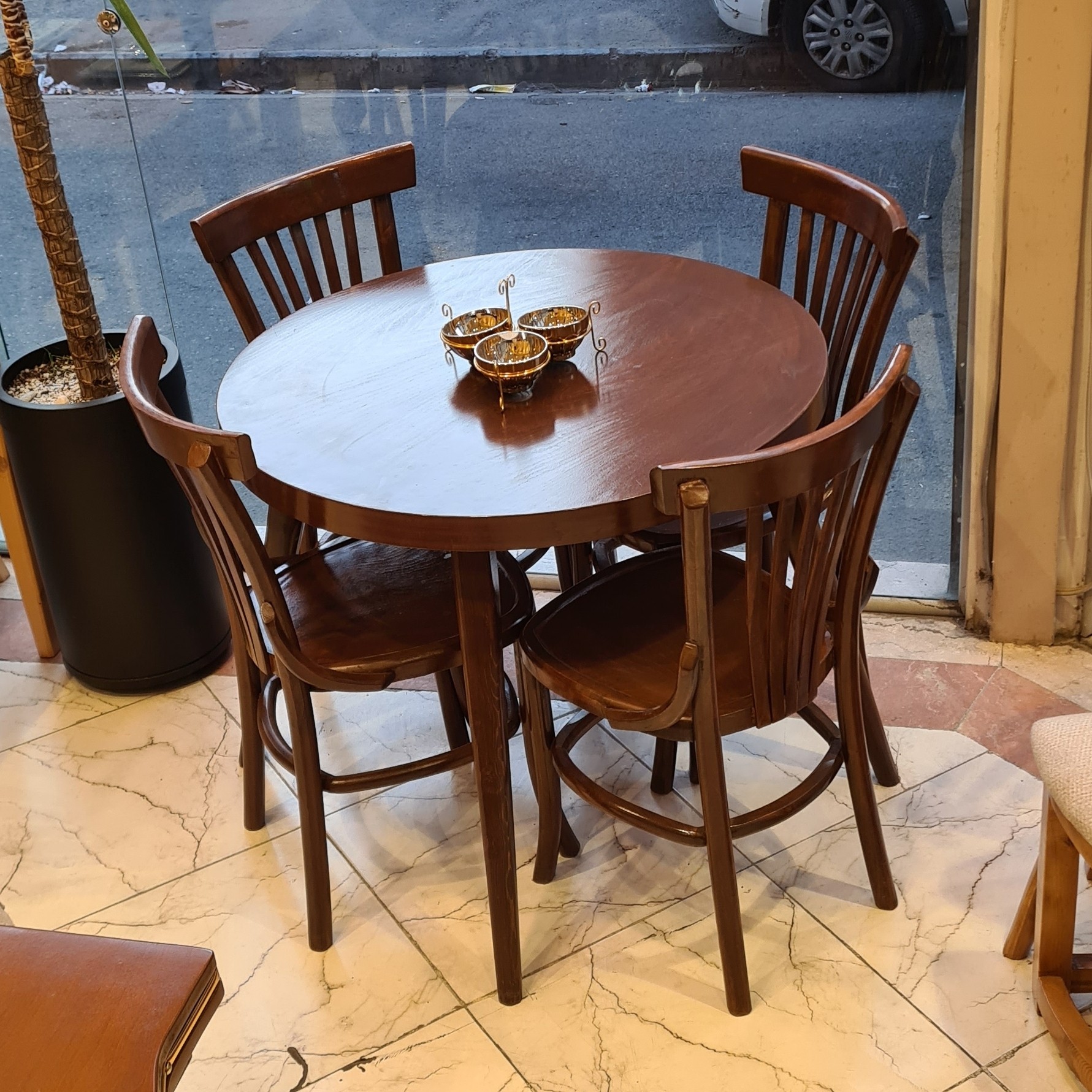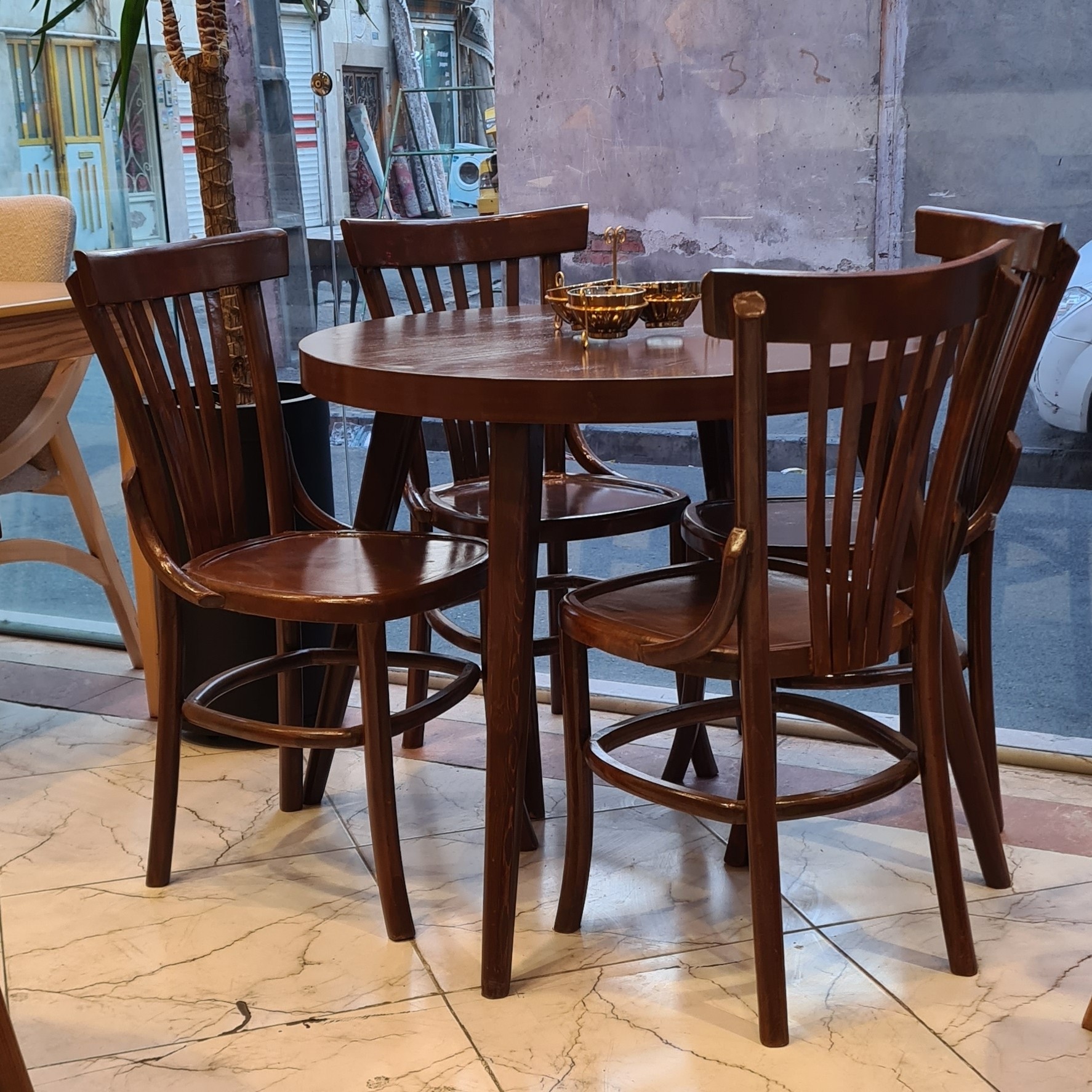 میز و صندلی ناهار خوری 4 نفره مدل لهستانی 5 تیرک ⭕️نکتهی مهم : این مدل کار شرکتی است و با کار های کارگاهی مقایسه نکنید🙏 🟢جنس صفحه میز: MDF روکش راش 🟢جنس پایه میز : چوبه روسی 🟢پایه میز به صورت پیچو مهره ای است و قابلیت بازو بسته شدن از صفحه را دارد 🟢ابعاد صفحه میز: قطر میز 90 سانتیمتر 🔴جنس چوبه صندلی: صددرصد چوبه توسکا 🔴رنگ چوب : فندقی تیره 🟣برای تغییره رنگه چوب 10 الی 14 روز کاری زمان لازمه 🟣هزینه و باربری و اسنپ به عهده مشتری عزیز میباشد🌹❤️ رضایت شما هدف ماست ✅️