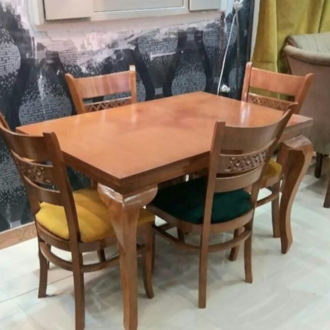 جنس صفحه میز ام دی اف، جنس پایه های میز و صندلی ها چوب روسی