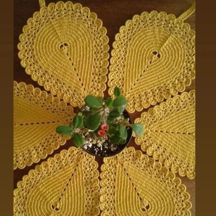 زیر بشقابی برگ. یا رومیزی برگ. به صورت تک با کاموای ایرانی قابل پیاده سازی در رنگ مورد نظر شما به عنوان زیر بشقابی. برای مهمانی های خاص و به صورت چند موتیف برگ در کنار هم، تشکیل رومیزی را می دهد.