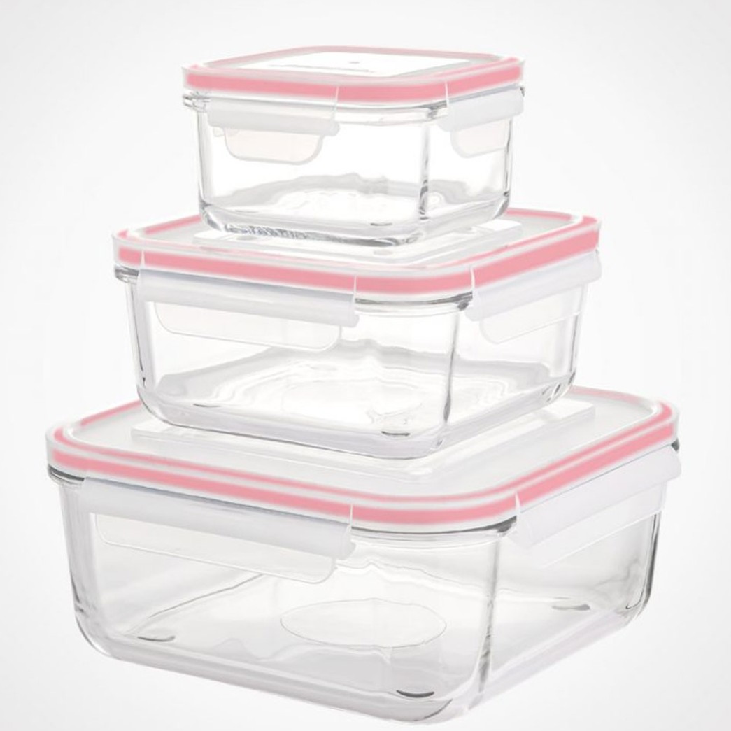 3 عدد ظرف در سایز ها و ابعاد ظرف 440 میلی لیتر : 12.5 *12.5 ارتفاع : 6.5 سانت ظرف 950 میلی لیتر : 17 * 17 ارتفاع : 8 سانت ظرف 2.3 لیتری : 22.5 * 22.5 ارتفاع : 9.5