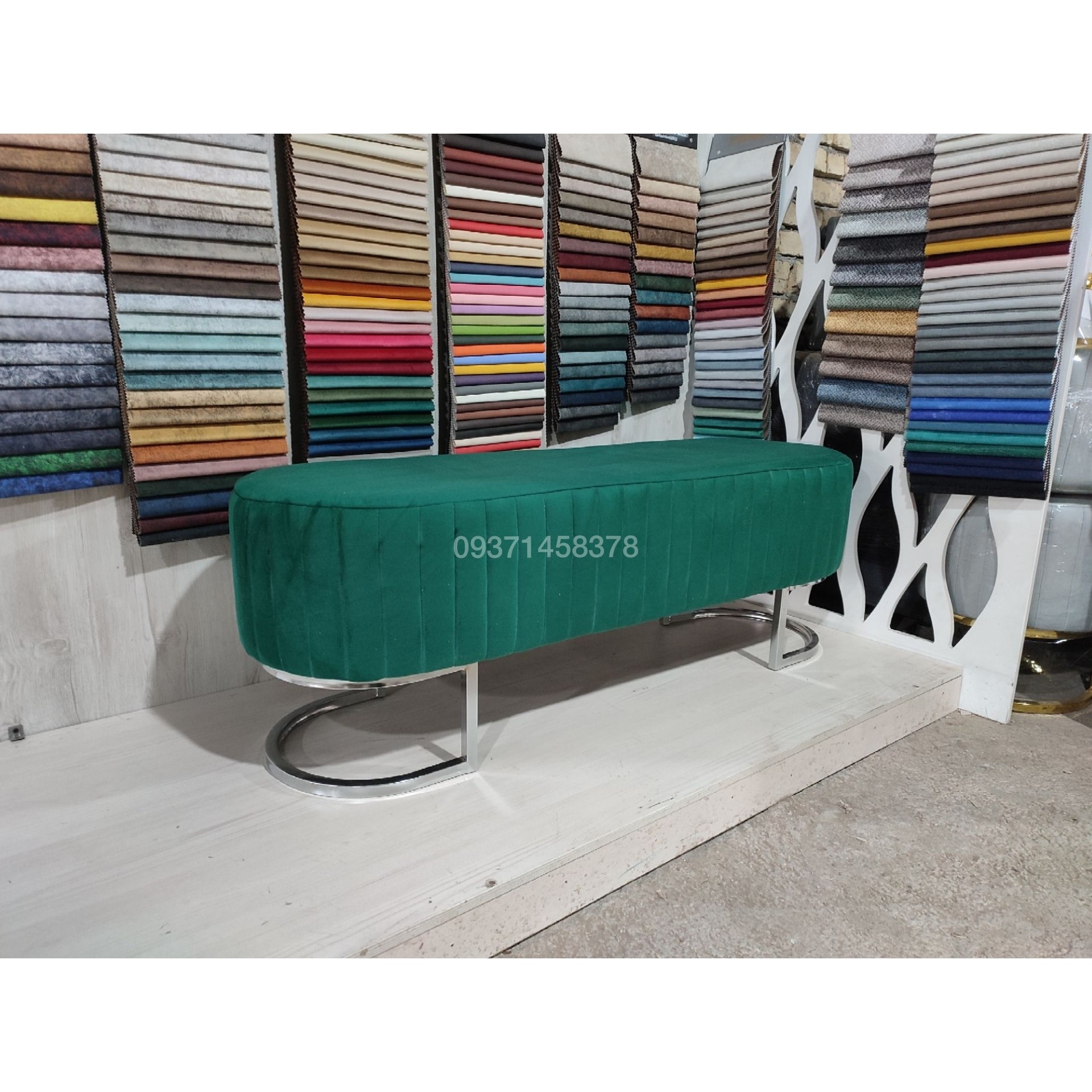پاف بیضی پایه فلزی آبکاری شده محکم و بادوام قابل استفاده در تمامی مکان ها مناسب برای نشستن سه نفر ضمانت یک ساله پارچه عالی و با کیفیت قابل سفارش در رنگ های مختلف هزینه ارسال به عهده مشتری