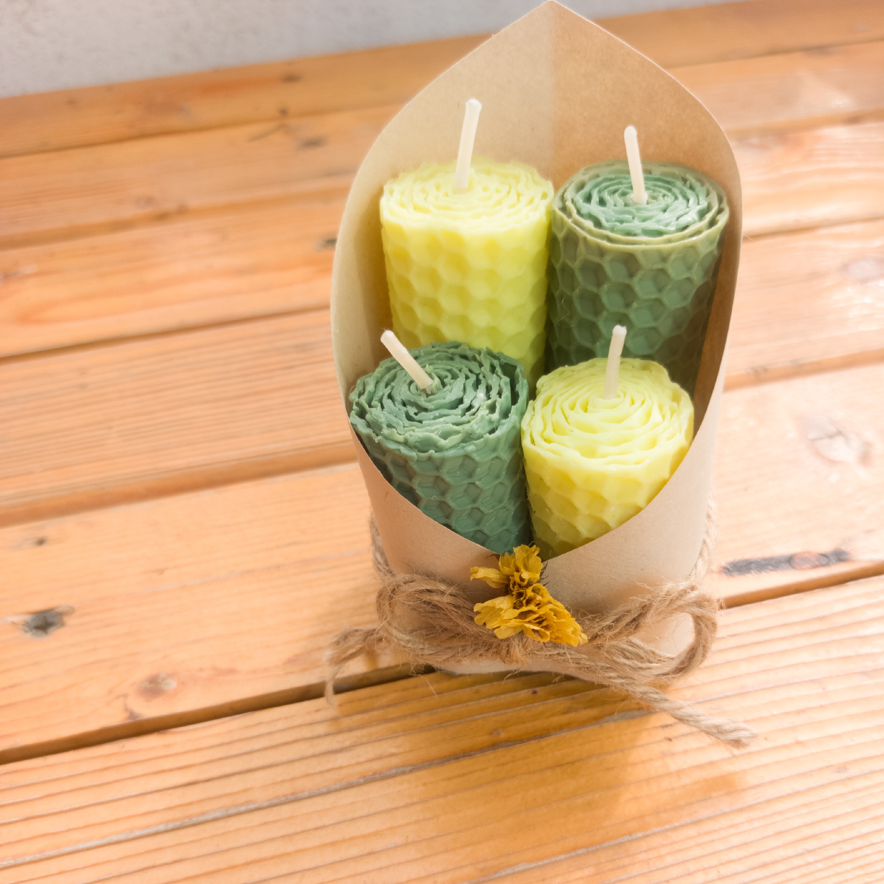 شمع موم عسل چهارتایی سایز شمع بزرگ: 8سانت سایز شمع کوچک: 5سانت قطر شمع ها: 3 سانت فیتیله تا اخر شمع کارگذاشته شده