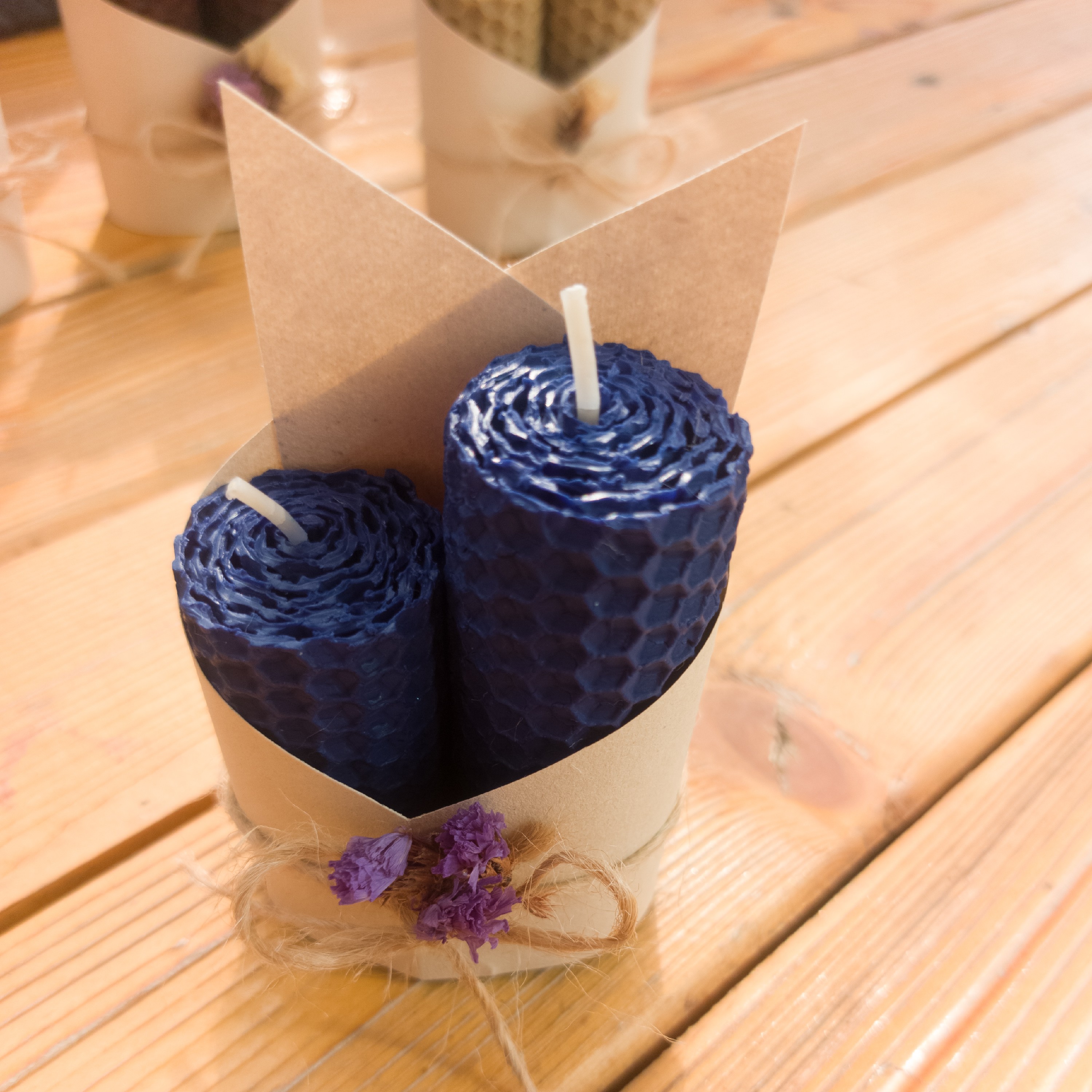 شمع موم عسل دوتایی سایز شمع بزرگ: 8سانت سایز شمع کوچک: 5سانت قطر شمع ها: 3 سانت فیتیله تا اخر شمع کارگذاشته شده