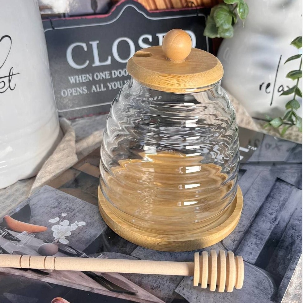 عسل خوری پیرکس همراه با قاشق چوبی مبلمونسرا مدل 288903