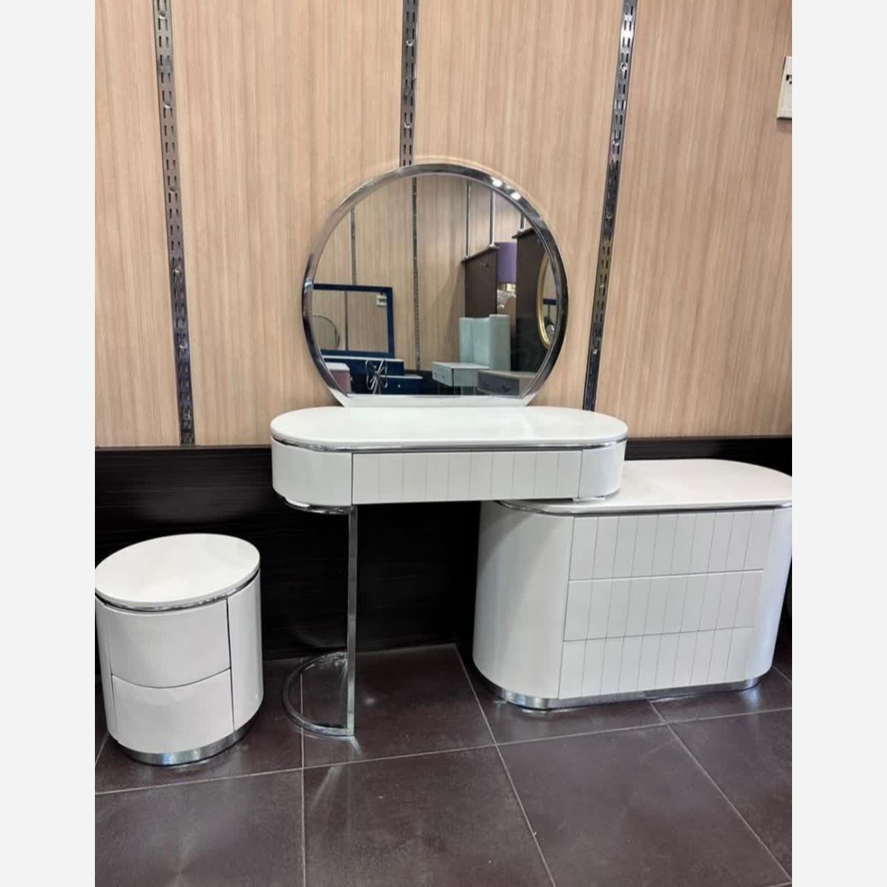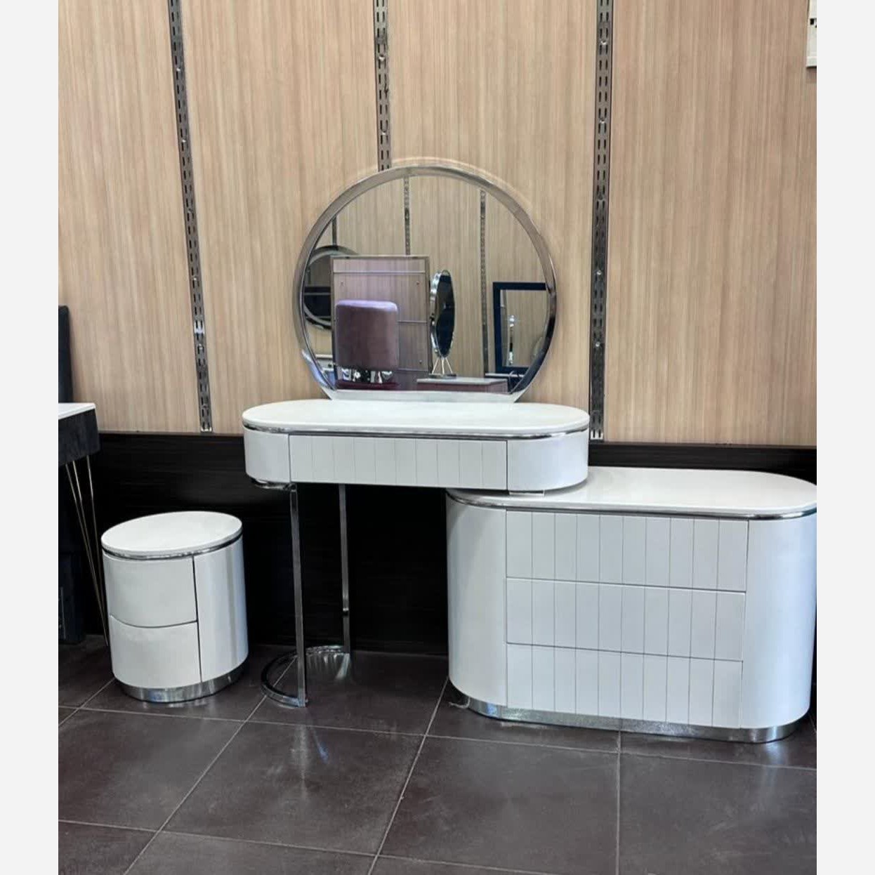 میز آرایش به همراه پاف ست کامل میز آرایش شامل پاف+ میز آرایش رنگبندی به سلیقه مشتری جنس استیل و پارچه خارجی عرض میز 120 آینه رومیزی و دیواری به سلیقه مشتری ارسال از طریق باربری بیمه شده به سراسر کشور مدت زمان آماده سازی 12 روز کاری مشتری عزیز قبل از خرید از قسمت چت استعلام قیمت بگیرید.