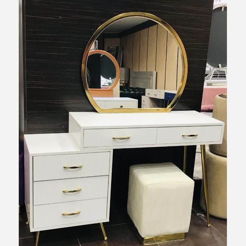 میز آرایش به همراه پاف ست کامل میز آرایش شامل پاف+ میز آرایش رنگبندی به سلیقه مشتری جنس استیل و پارچه خارجی عرض میز 120 آینه رومیزی و دیواری به سلیقه مشتری ارسال از طریق باربری بیمه شده به سراسر کشور مدت زمان آماده سازی 12 روز کاری مشتری عزیز قبل از خرید از قسمت چت استعلام قیمت بگیرید.