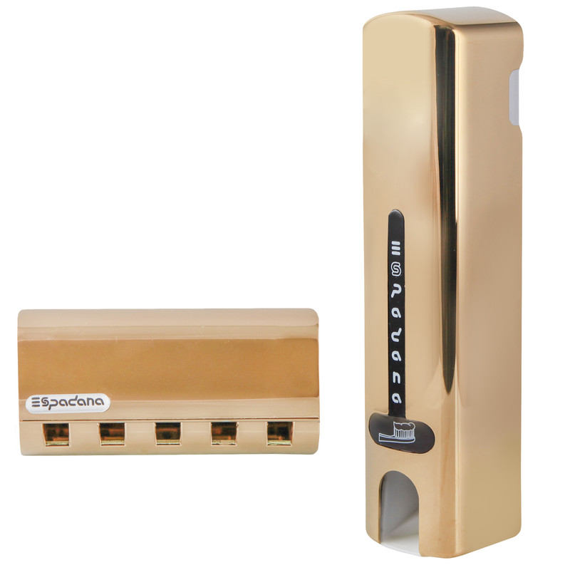دستگاه خمیردندان ریز اسپادانا محصولی است لوکس که بدون استفاده از برق و باطری و به صورت مکانیکی می باشد . در قسمت پشت دستگاه چسب دو طرفه برای نصب روی دیوار وجود دارد . این دستگاه به همراه جا مسواکی می باشد .این محصول دارای پمپ عالی سیلیکونی می باشد که بهیچ عنوان خشک و پاره نمی شود .استفاده از این محصول بهداشت را برای خانواده ارمغان می آورد زیر هیچ گونه تماسی با خمیردندان و برس مسواک ایجاد نمی شود.لازم بذکر است تکنولوژی طلایی کردن این محصول PVD می باشد مانند شیر آلات که تا چندین سال رنگ آن ثابت می ماند و این تکنولوژی جدیدترین تکنولوژی طلایی نمودن کالا میباشد که مزیت های بسیار زیادی نسبت به روش قبل که آبکاری بوده دارد.و براحتی بایک دستمال مرطوب از هرگونه لکه ای پاک می شود و بهیچ عنوان خش روی محصول ظاهر نمی گردد.