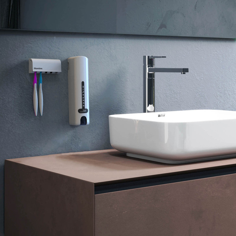 همه ما نیاز به استفاده از جامسواکی و خمیر دندان داریم، اما بهتر است راحت ترین و بهداشتی ترین مدل ها را انتخاب نماییم. این ست شامل یک خمیر دندان ریز اتوماتیک است که به صورت مکانیکی و بدون برق و باتری کار می کند، کافی است خمیر دندان را در جای خود قرار دهید و برای هر بار استفاده مسواک را در محل مخصوص فشار دهید تا بدون نیاز به دست، خمیر دندان به بیرون آمده و جالب اینکه در این حالت از کل خمیر دندان بدون هدر رفتن استفاده خواهید نمود. جا مسواکی آن هم بسیار ساده و 5 مسواک را در خود جای می دهد و یک در پوش دارد که از نشستن گرد و غبار و حشرات بر روی مسواک ها جلوگیری می نماید. این ست از جنس پلاستیک بوده و بوسیله چسب دو طرفه و بدون نیاز به دریل و سوراخ کردن، بر روی دیوار نصب می گردد.