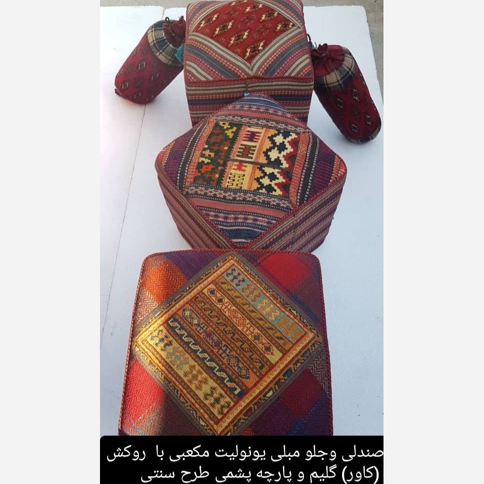 تولید و عرضه انواع صندلی پاف با استفاده از یونولیت وبا روکش گلیم و جاجیم در طرحهای مختلف کاربردهای تزییناتی و دکوراتور واستفاده برای صندلی وجلو مبلی و عسلی و میز وغیره.... درصورتی که روکش پاف با پارچه به رنگهای دلخواه برای ست کردن با دکوراسیون منزل وسایر مکانها انجام شود قیمت آن پایین تر میباشد