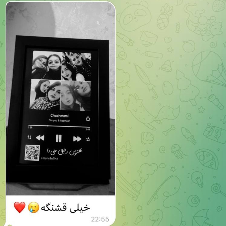 تابلو موزیک پلیر 💓 ✅ سایز16 در 21 ✅ دارای بارکد صوتی ✅ همه چی کاملا ب سلیقه ی شما ✅ارسال 7 روز کاری