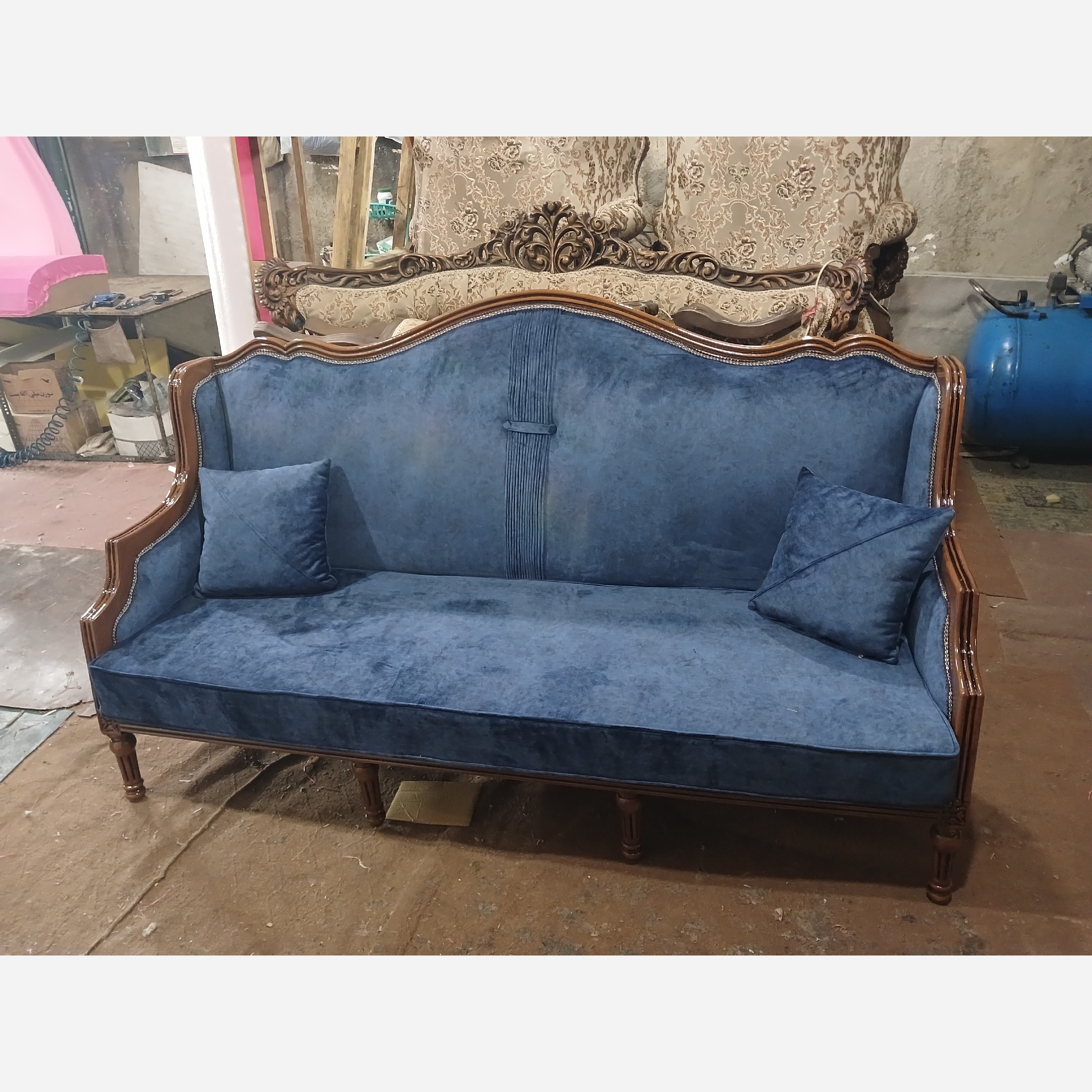 مبل کویین 7 نفره 3 نفره +4عدد تک نفره رنگ چوب و پارچه به سلیقه مشتریان عزیز
