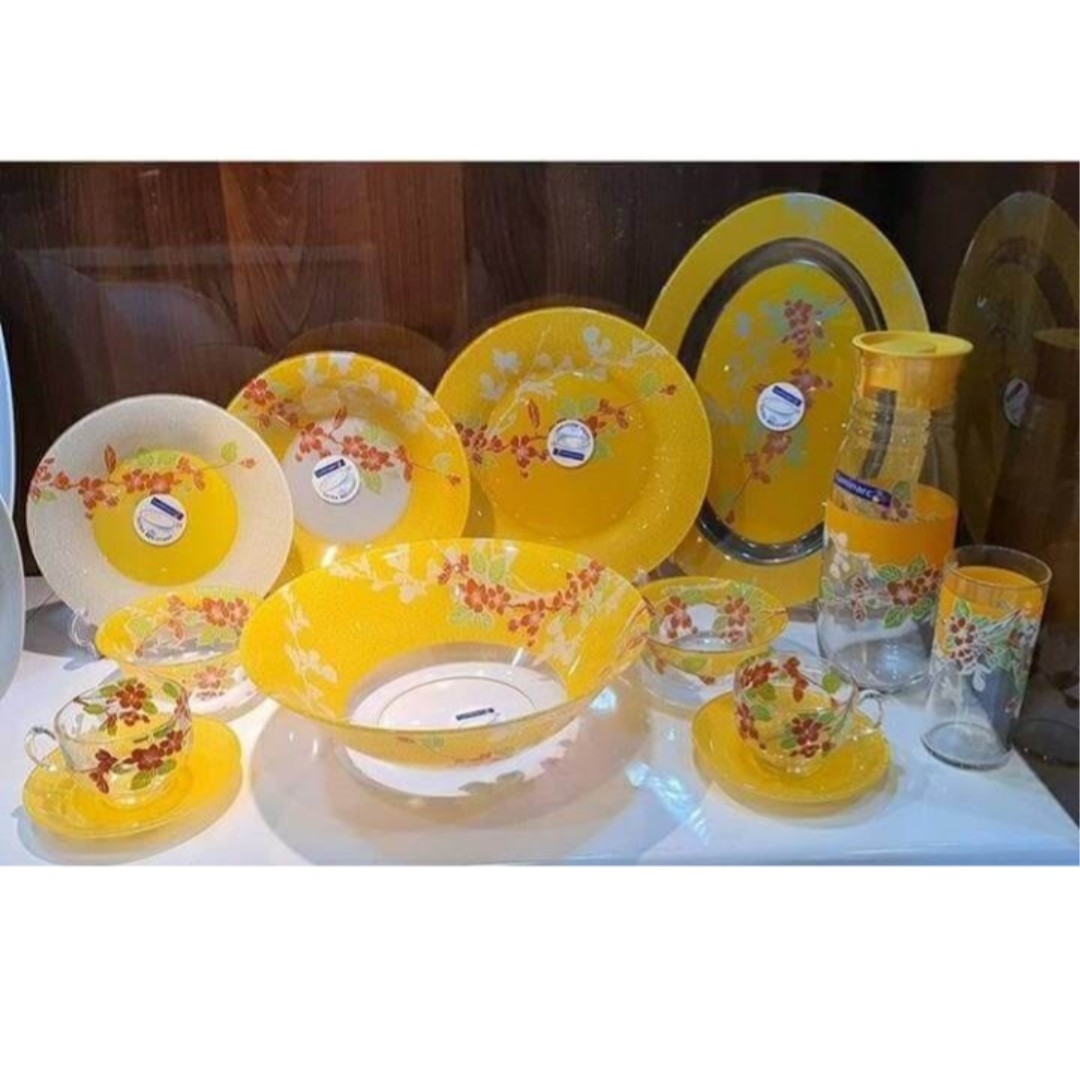 دیس پلوخوری 1 عدد بشقاب پلوخوری 6 عدد بشقاب پیش دست 6 عدد بشقاب گود خورش 6 عدد کاسه ماست 6 عدد کاسه سالاد 1 عدد فنجان 6 عدد نعلبکی 6 عدد پارچ 1 عدد لیوان پیرکس 6 عدد قابلیت استفاده در ماکروویو دارد قابلیت شستشو در ماشین ظرفشویی دارد رنگ نارنجی برند لومینارک