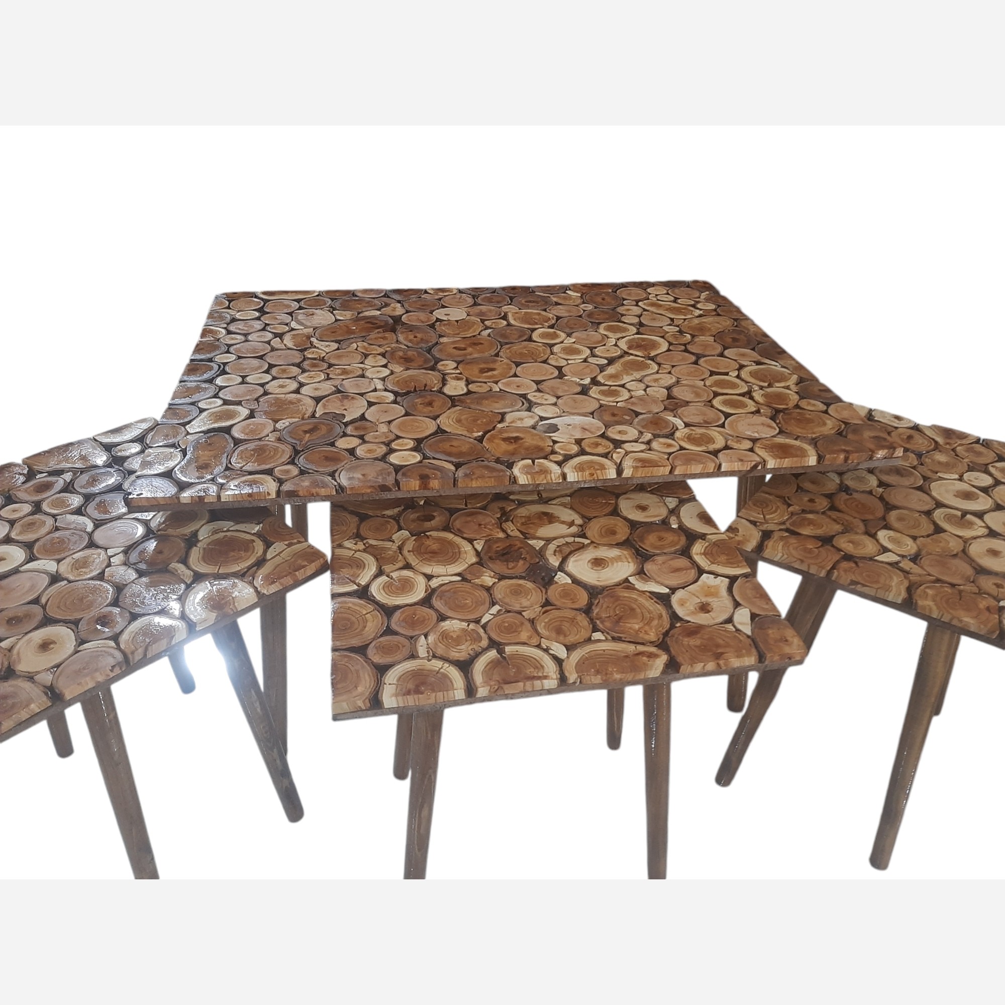میز وسط و سه عدد عسلی ساخته شده با تیکه چوب زردالو با تحمل وزن مناسب و مقاوم به رطوبت یه کار خاص و منحصر به فرد