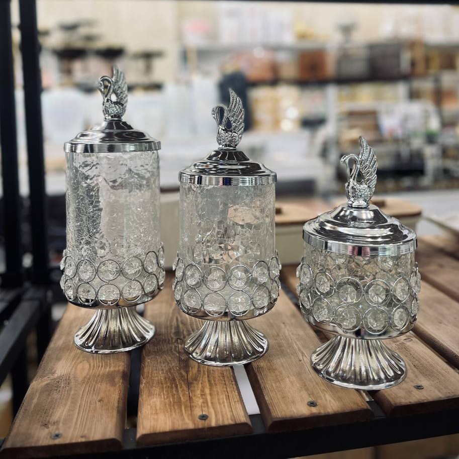 پاسماوری آبگز قو کندی ابگز قو پایه دار نقرهای طلایی کندی ابگز کندی شکلات خوری3تایی مبلمونسرا مدل 290802