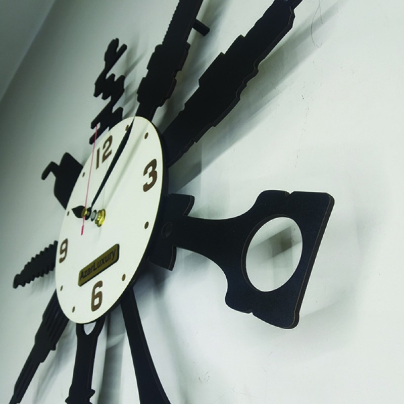 ساعت دیواری طرح تعمیرگاه یا مکانیکی یکی از مدرنترین محصولات دکوراتیو می باشد که جهت زیباسازی محیط فروشگاه مورد استفاده قرار میگیرد که باعث جلب توجه دید مشتریان میشود از این رو استفاده از محصولات دکوراتیو در محیطهای یکنواخت باعث جذابیت بیشتر میشود و استفاده از محصولات باکیفیت آذرلاکچری این امکان را برای شما عزیزان فراهم مینماید.
