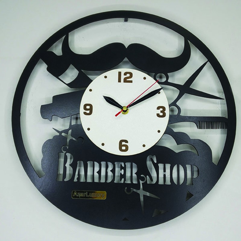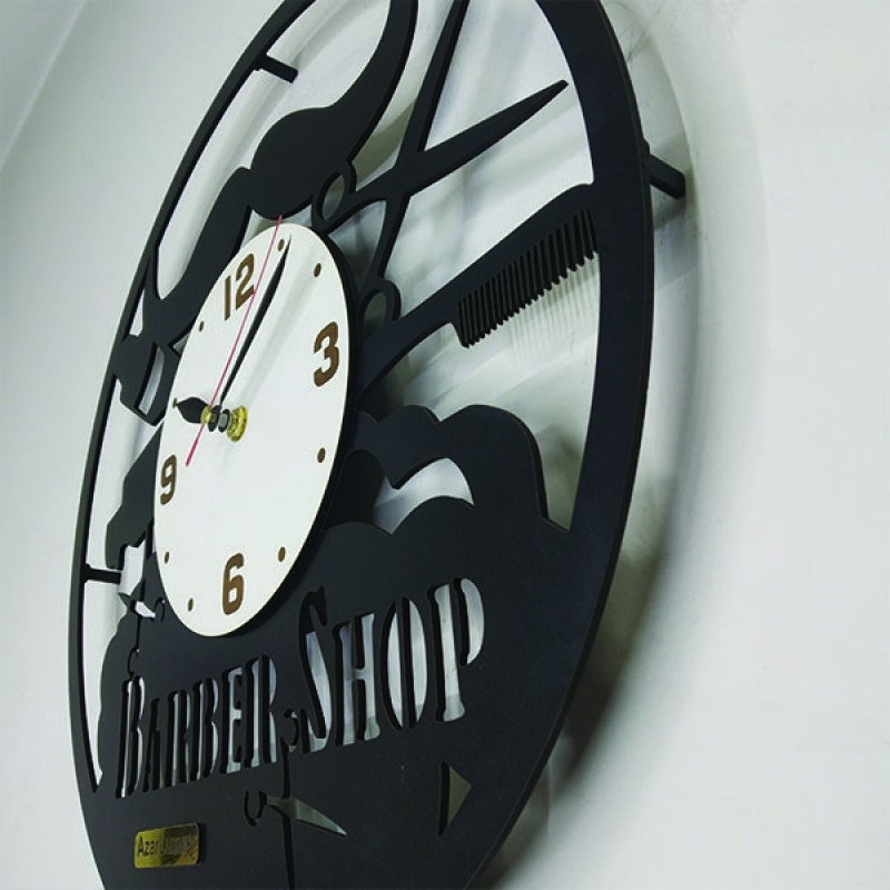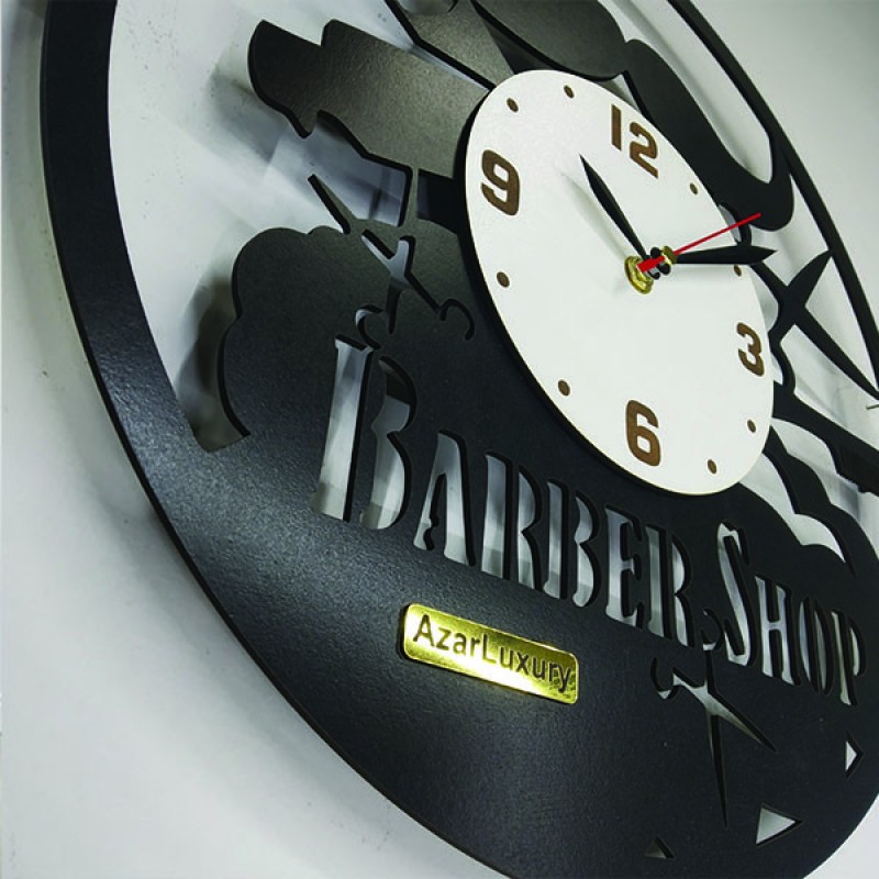 ساعت دیواری طرح آرایشگاه یکی از مدرنترین محصولات دکوراتیو می باشد که جهت زیباسازی محیط آرایشگاه با طراحی 3بعدی مورد استفاده قرار میگیرد که باعث جلب توجه دید مشتریان میشود از این رو استفاده از محصولات دکوراتیو در محیطهای یکنواخت باعث جذابیت بیشتر میشود و استفاده از محصولات باکیفیت آذرلاکچری این امکان را برای شما عزیزان فراهم مینماید. جنس چوبی 3میل مشکی برای بدنه اصلی محصول استفاده شده و صفحه ساعت نیز چوبی 3میل طرحدار با حکاکی شماره جلوه زیبایی به محصول ایجاد کرده و موتور ساعت از جنس تایوانی استفاده شده که صدای بسیار کمی و کیفیت بسیار بالایی نسبت به موتورهای چینی دارد و دارای گیره نگهدارنده جهت نصب آسان روی دیوار می باشد.