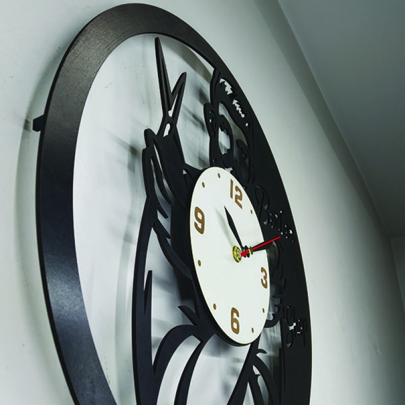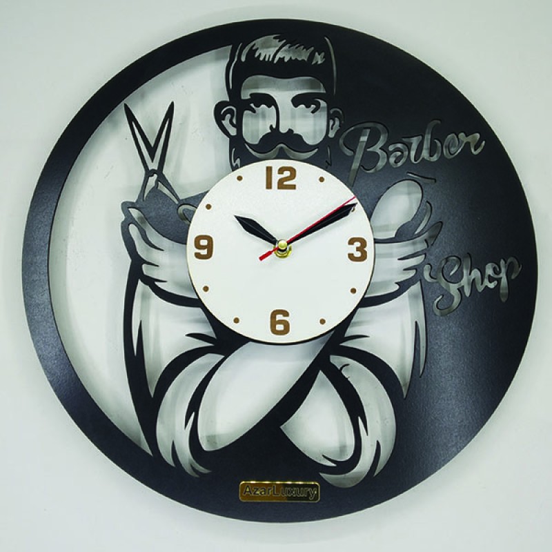 ساعت دیواری طرح آرایشگاه یکی از مدرنترین محصولات دکوراتیو می باشد که جهت زیباسازی محیط آرایشگاه با طراحی 3بعدی مورد استفاده قرار میگیرد که باعث جلب توجه دید مشتریان میشود از این رو استفاده از محصولات دکوراتیو در محیطهای یکنواخت باعث جذابیت بیشتر میشود و استفاده از محصولات باکیفیت آذرلاکچری این امکان را برای شما عزیزان فراهم مینماید. جنس چوبی 3میل مشکی برای بدنه اصلی محصول استفاده شده و صفحه ساعت نیز چوبی 3میل طرحدار با حکاکی شماره جلوه زیبایی به محصول ایجاد کرده و موتور ساعت از جنس تایوانی استفاده شده که صدای بسیار کمی و کیفیت بسیار بالایی نسبت به موتورهای چینی دارد و دارای گیره نگهدارنده جهت نصب آسان روی دیوار می باشد.