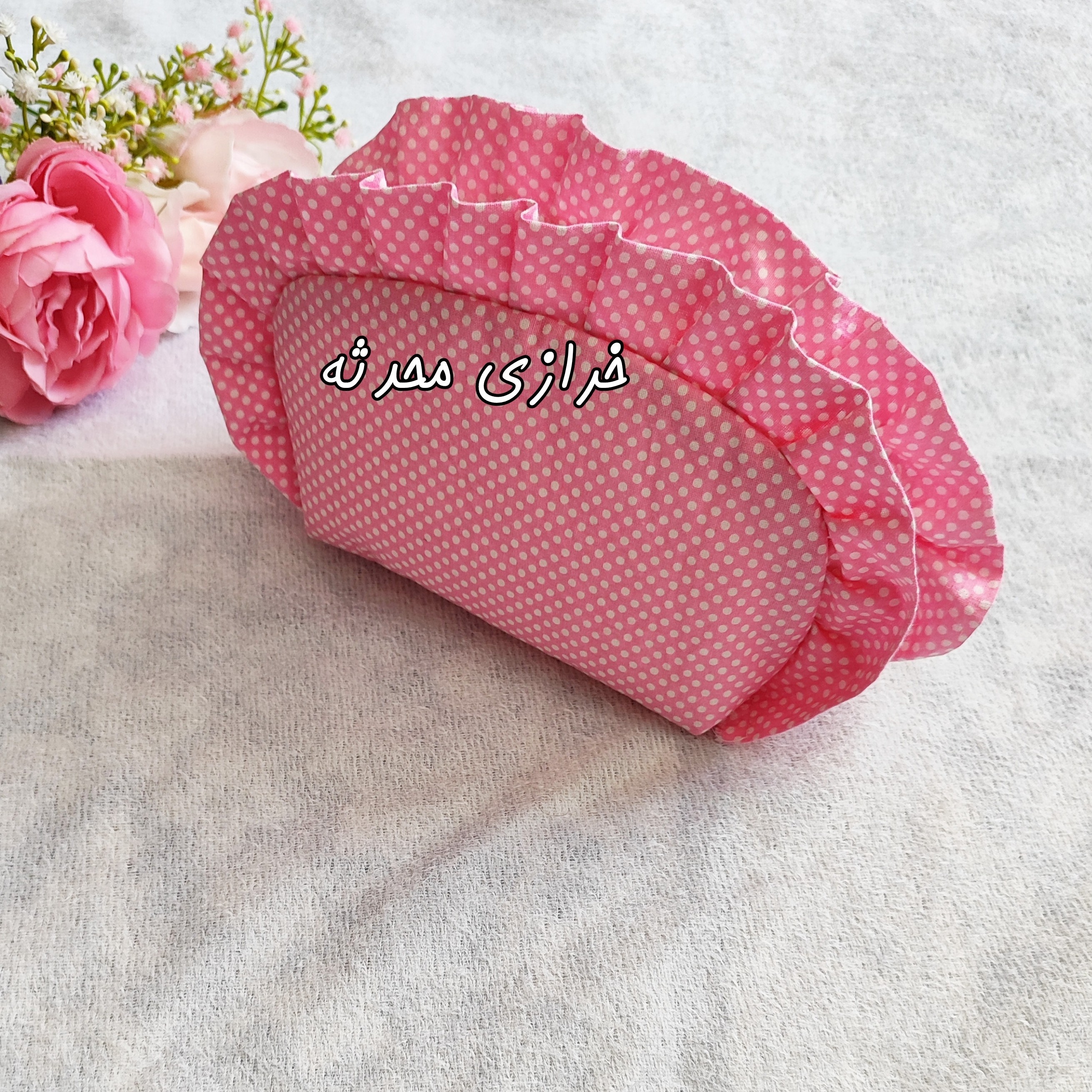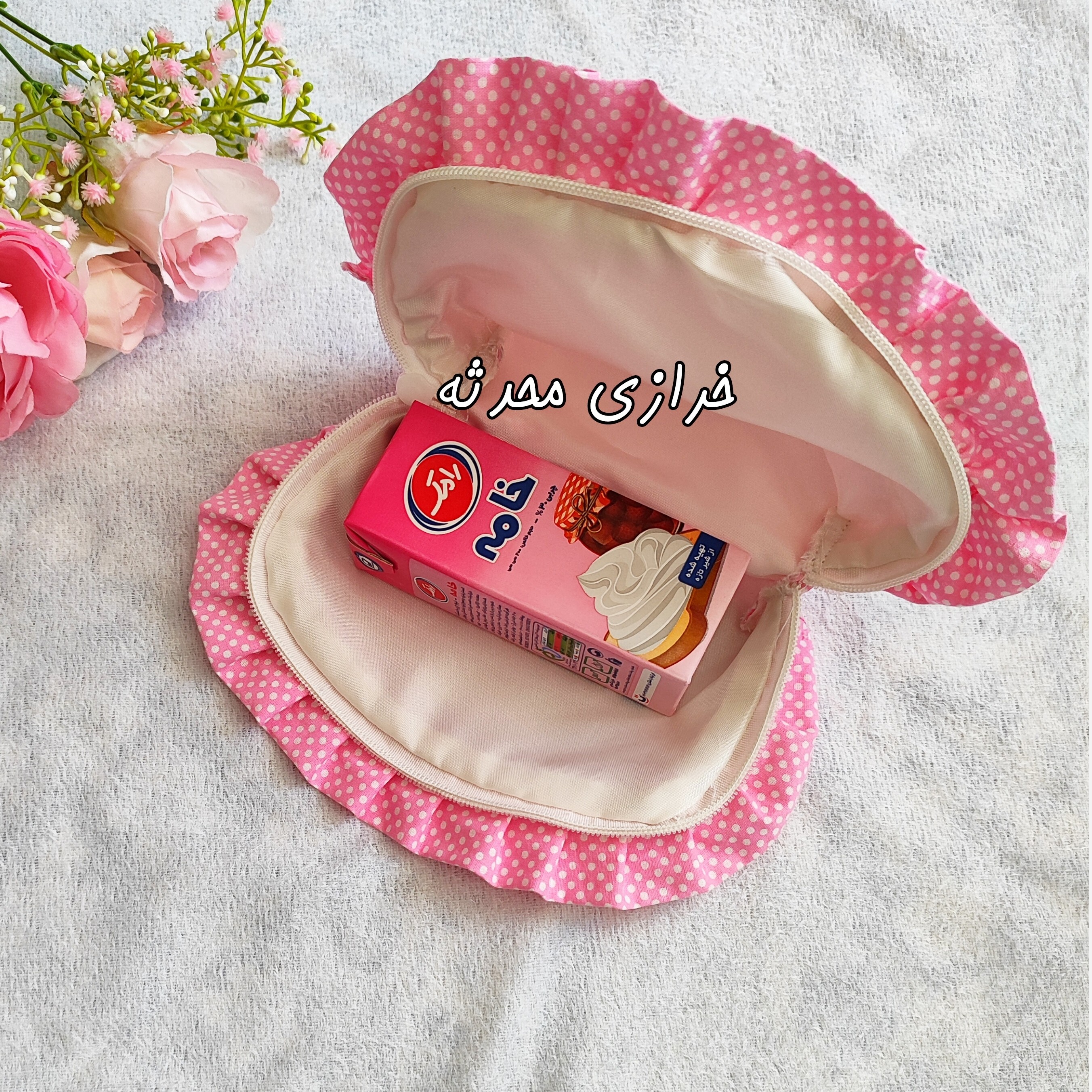 کیف لقمه صورتی خالدار کیف صبحانه کیف آرایشی مبلمونسرا مدل 297360
