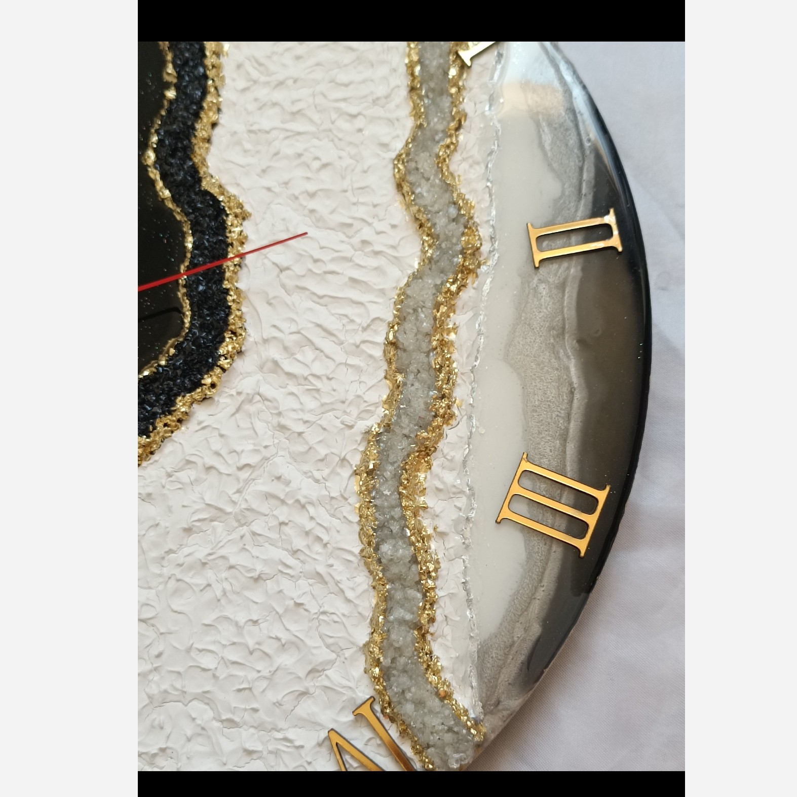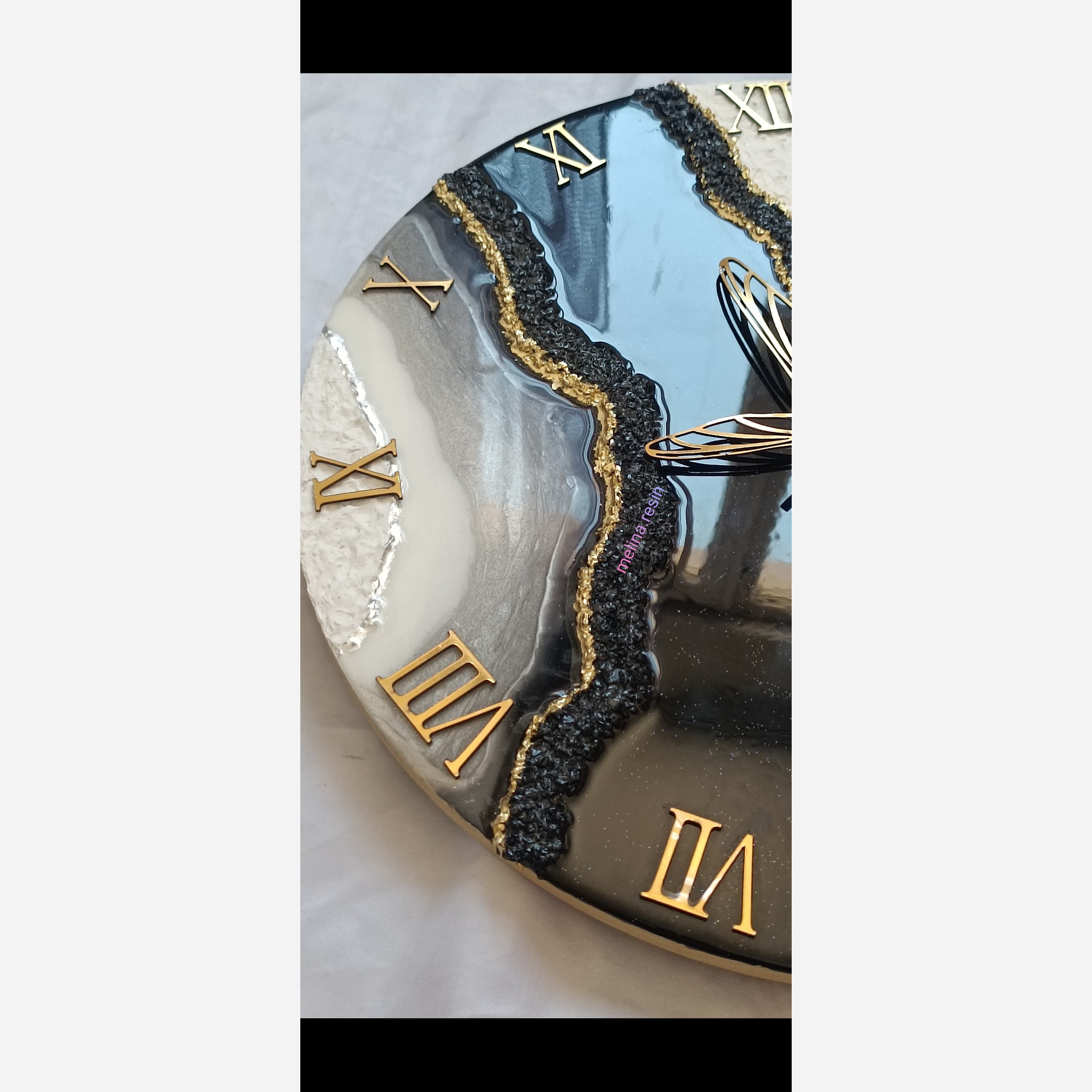 رزین اپوکسی، خمیر تکسچر،بیس چوب ، کریستال،عقربه و اعداد موتور ارامگرد
