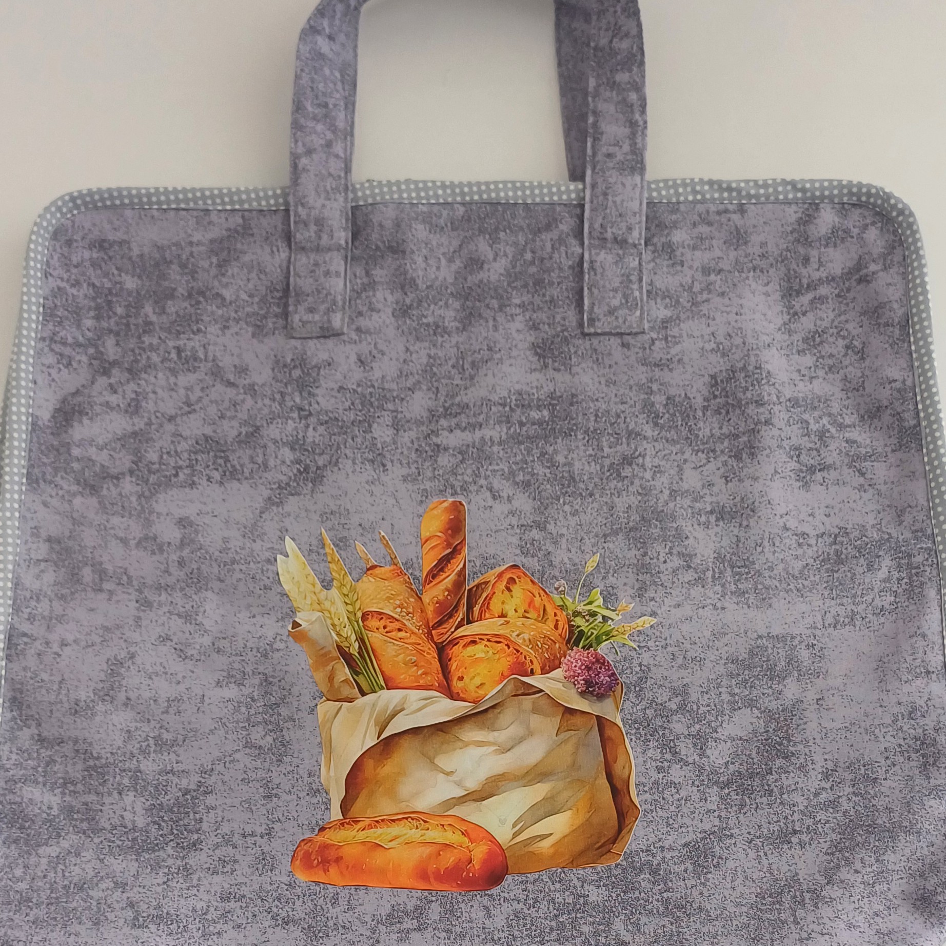 ساک نان یه کار عالی برای اینکه وقتی میرین نانوایی دیگه نیازی نیست که نون رو داخل پلاستیک یا یه شال بزارید چون حجم دار هست تعداد زیادی نون داخلش جا میشه این کار 3 لایه هست پارچه اصلی، استری برزنت یا سفره که باعث میشه نون داخلش خشک نشه و لایه استری تترون ساده روی کار برچسب زده شده دور کار نوار اریب