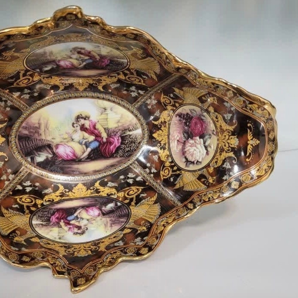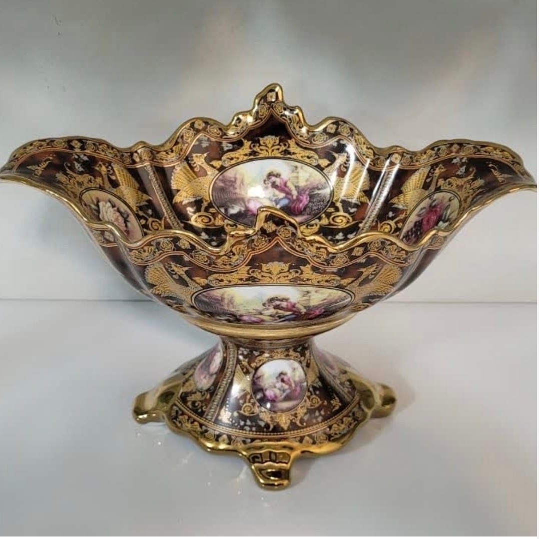 کشکول طرح قهوه ای لیلی مجنون طلاکوب مناسب میوه خوری ارسال ایمن مبلمونسرا مدل 273409