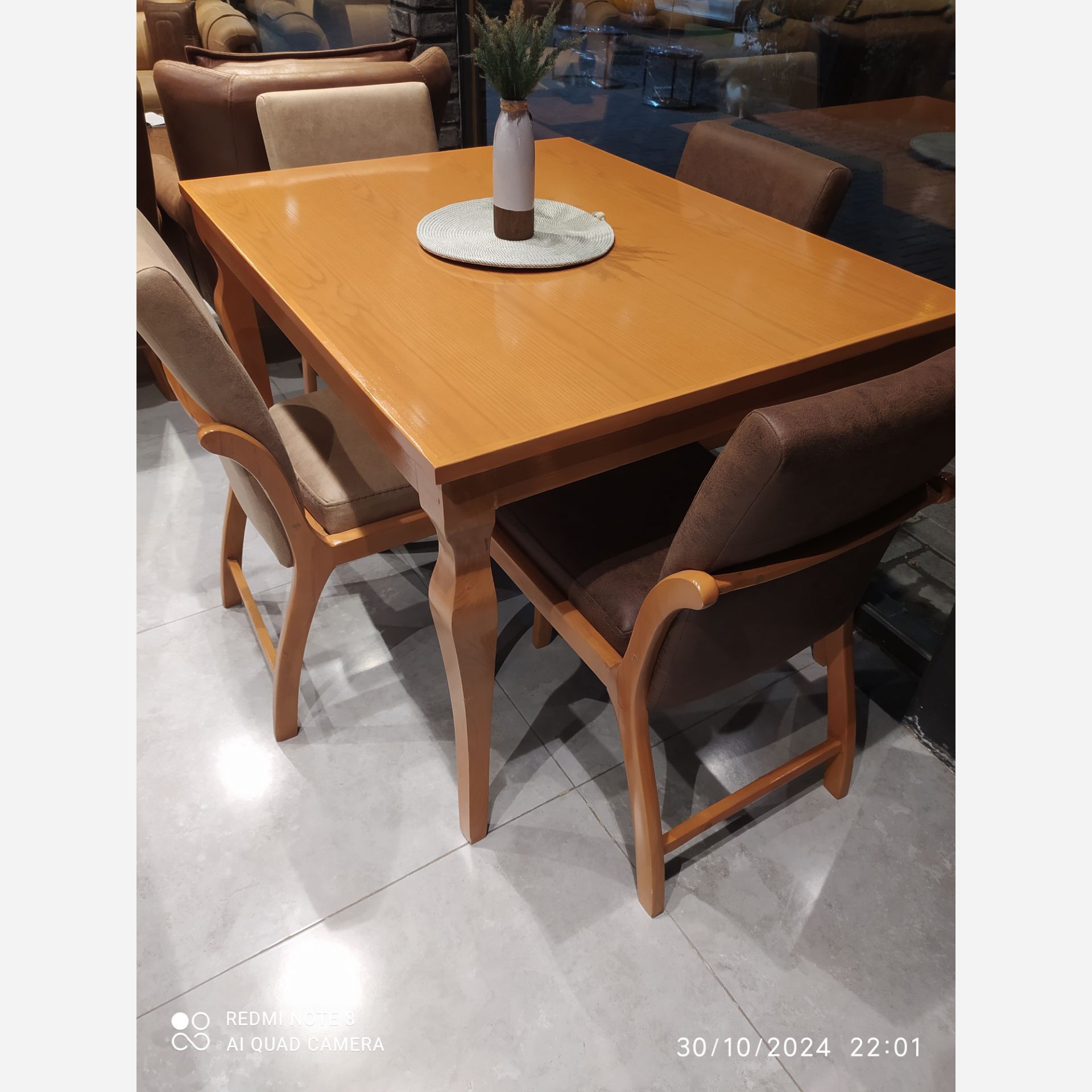 میز ناهار خوری مدل ونوس 4 نفره ✅ پایه های میز صندلی از چوب تمام راش ✅ اسفنج با کیفیت ،پشتی و نشیمن راحت ✅ رنگ بندی متنوع پارچه ✅ رنگ بندی متنوع چوب ✅ قابل سفارش در ابعاد دلخواه شما ✅