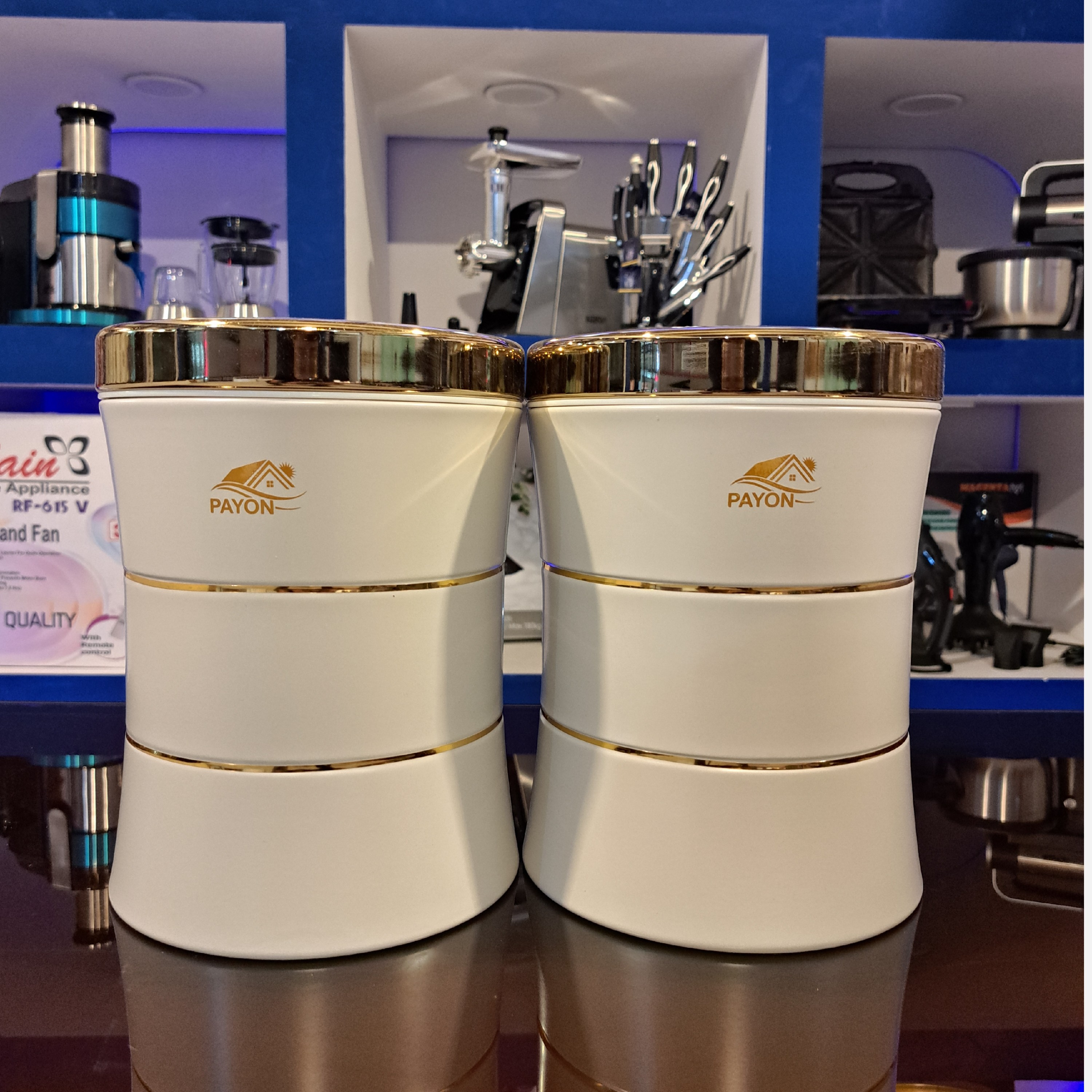 به نام خدا خرید بدون واسطه از کارخانه فروش تک و عمده ضمانت:36 ماه گارانتی بی قید و شرط طرح:کمرباریک خط دار درب:طلا جنس:فلزی گنجایش:3 کیلو مدل ساده درب همرنگ با قوطی موجود میباشد از فروشگاه بزرگ دیدن کنید