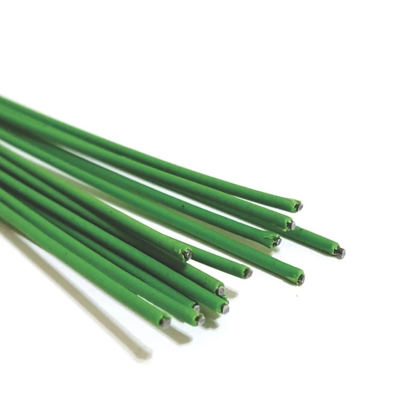 ساقه گل مصنوعی مفتولی با روکش سبز، قابل شستشو، طول حدودی 35 سانتی متر، ضخامت حدود 2 میلیمتر، بسته بندی معروف به 300 عددی