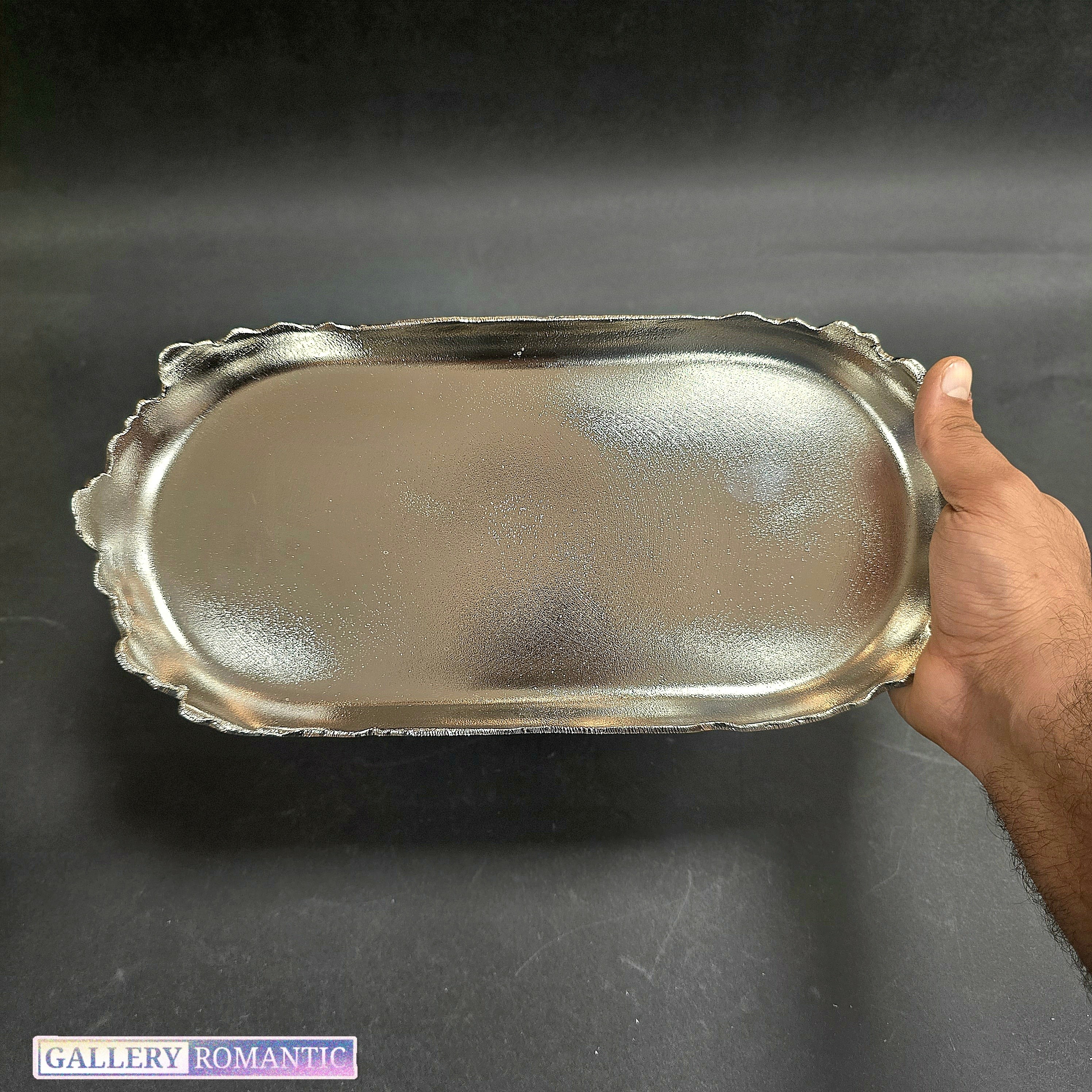 ⭕️رولت خوری پایه دار آلومینیومی کنگره ریخته گری ماسه و ابکاری نیکل طول 35 🔻جنس این ظرف تماما آلیاژی از الومینیوم میباشد. 🔻فرایند تولید ان در کارخانجات شمال ایران صورت میگیرد که بصورت ریخته گری ماسه انجام میگیرد. 🔻این ظروف با نیکل ابکاری شده اند. 🔻کاملا اورجینال و بسیار با کیفیت 🔻مناسب پذیرایی مهمان/شیرینی و فینگر فود و رولت خوری و ... ✅️باقی اقلام این پذیرایی زیبا در صفحه خانه و اشپزخانه رمانتیک موجود میباشد 🔹️طول سینی 35 سانتی متر عرض 16 /ارتفاع سینی 10 سانتی متر 🔻3 پایه ریز در زیر 🔻وزن بنسبت سنگین/لبه ها کنگره و عمق مناسب جهت قرار گیری شیرینی و ... ⚠️لطفا قبل از سفارش جهت اطلاع از موجودی پیام دهید 📦ارسال فوری با ضمانت بصورت به سراسر کشور