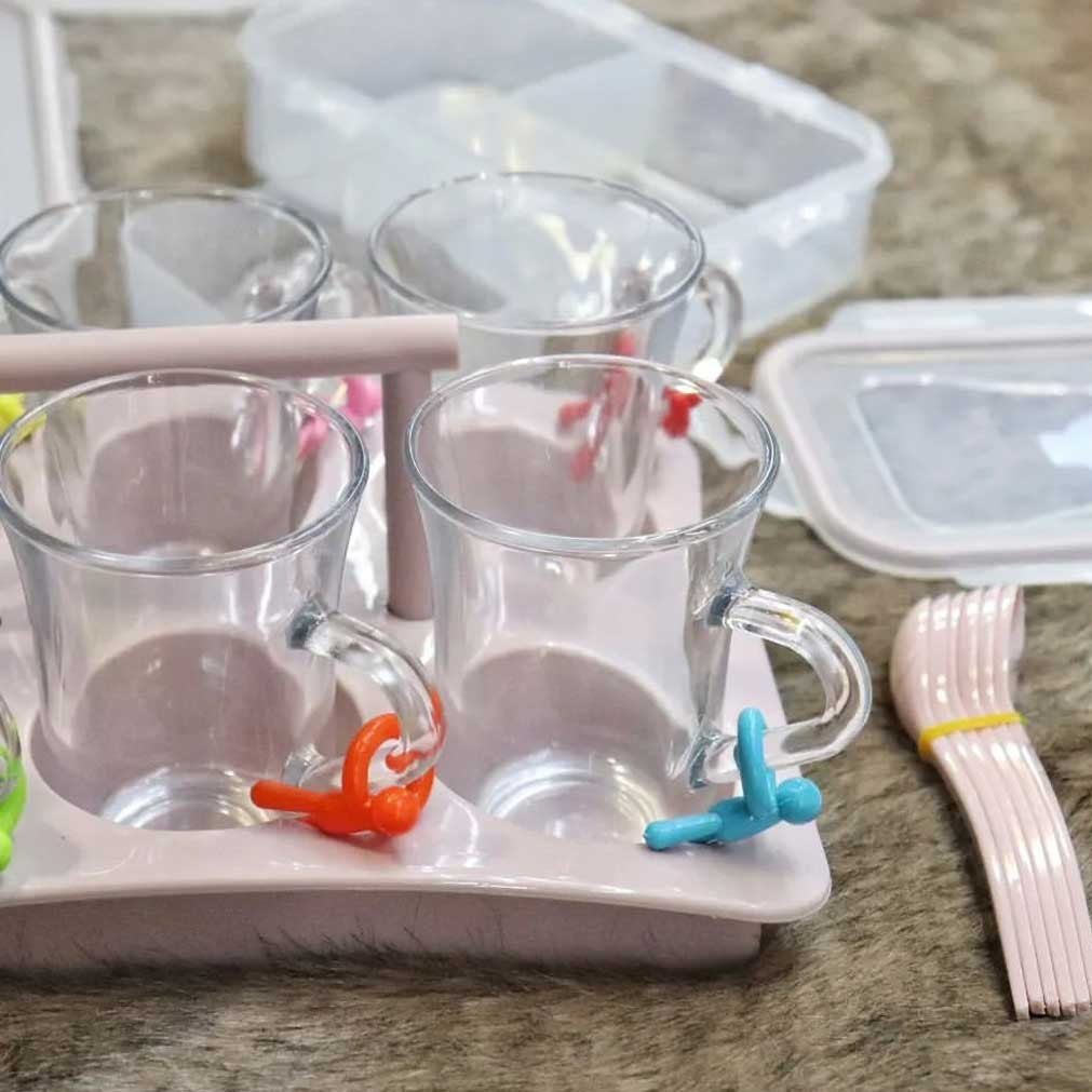 سرویس چایخوری یا صبحانه خوری 6 نفره لیمون یکی از کاملترین سردیس ها جهت صرف یک چایی درکنار عزیزانتون در طبیعت. 6 عدد لیوان شیشه ای مدل شیپوری که اسم لیمون تهش حک شده ،یک دیس با دسته متحرک،6 عدد قاشق چایخوری،6 عدد ادمک نشان جهت قاطی نشدن لیوانها باهم ،دوعدد ظرف فریزری دارای مقسم 450 میلی لیتری و یک پک نگهدارنده بزرگ که تمامی اجزا را درخودش جای داده . در سه رنگ زیبای : کرمی،طوسیو صورتی کرپ تقدیمتون میشه.