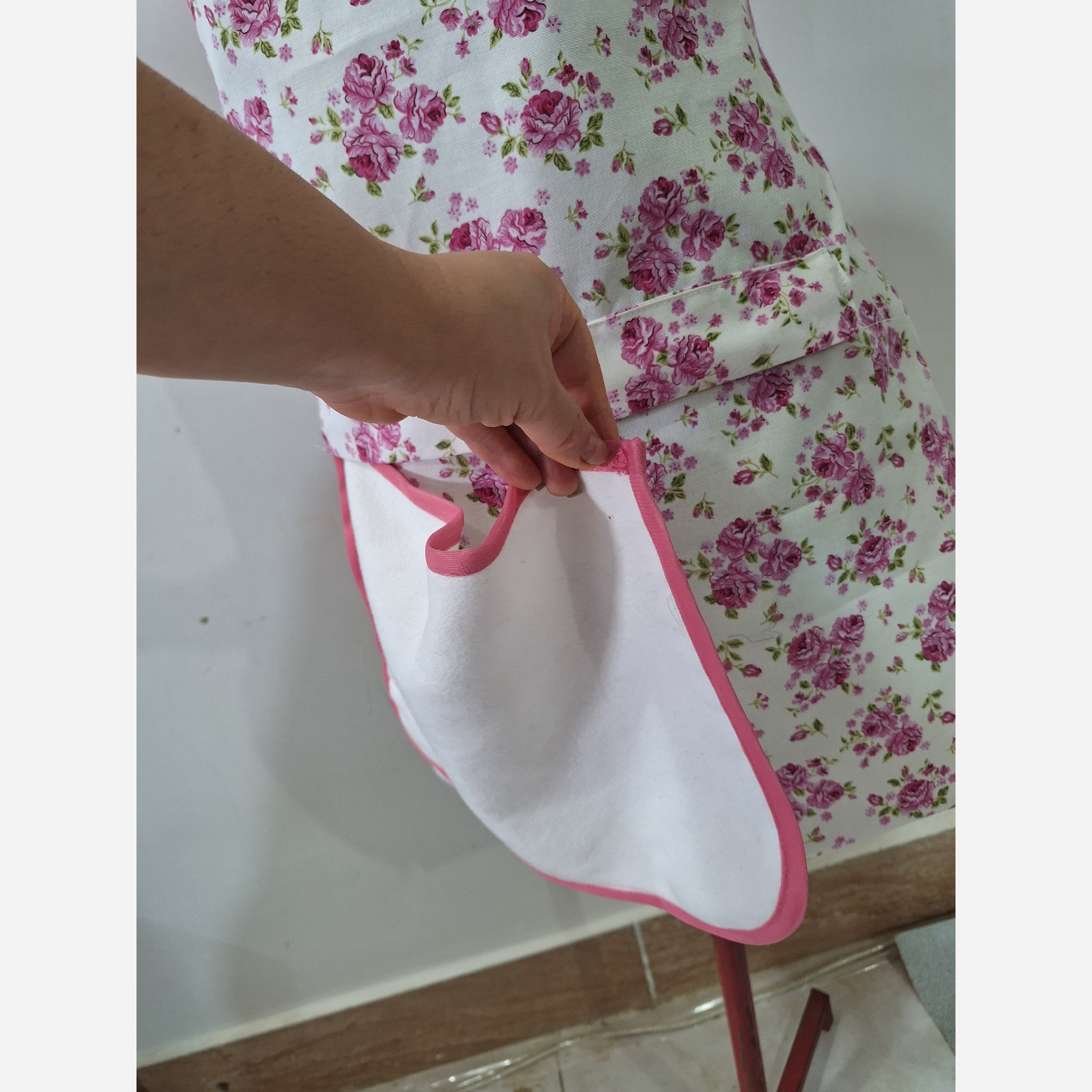 این مدل پیشبند جدا از اینکه لایه ضد اب دار قسمت جلوی دامن پیشبند حوله داره که با چفت جدا و وصل میشه راحت قابل شست و شو است