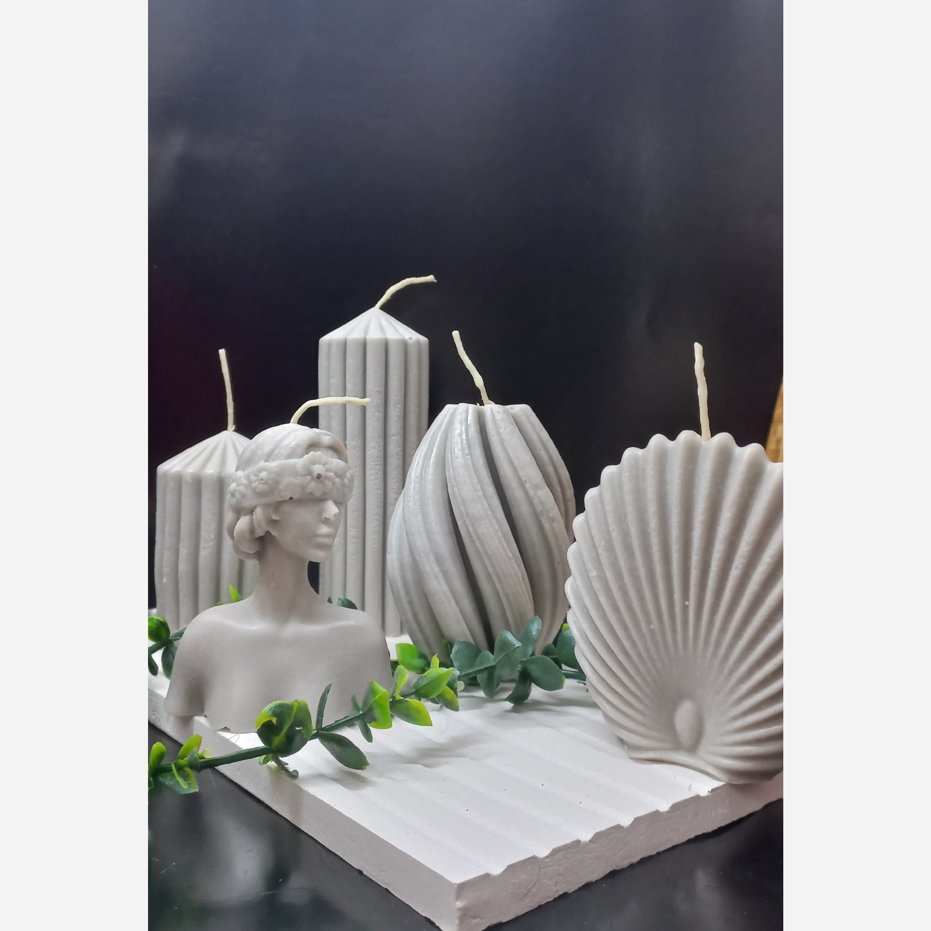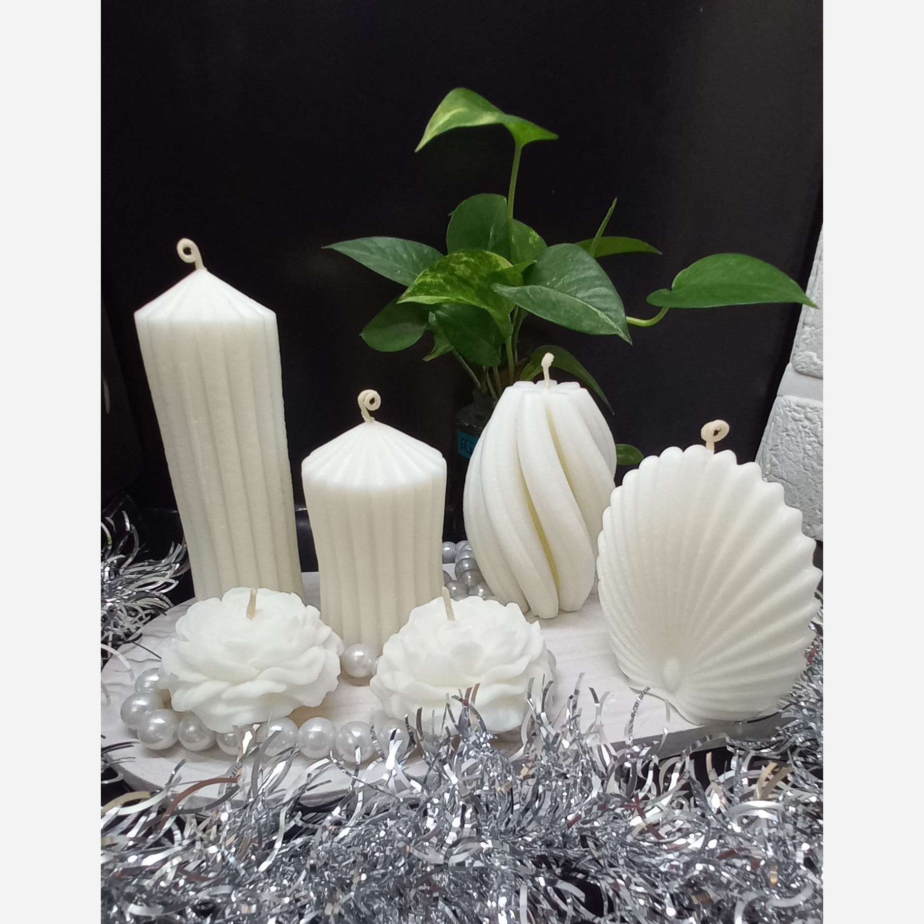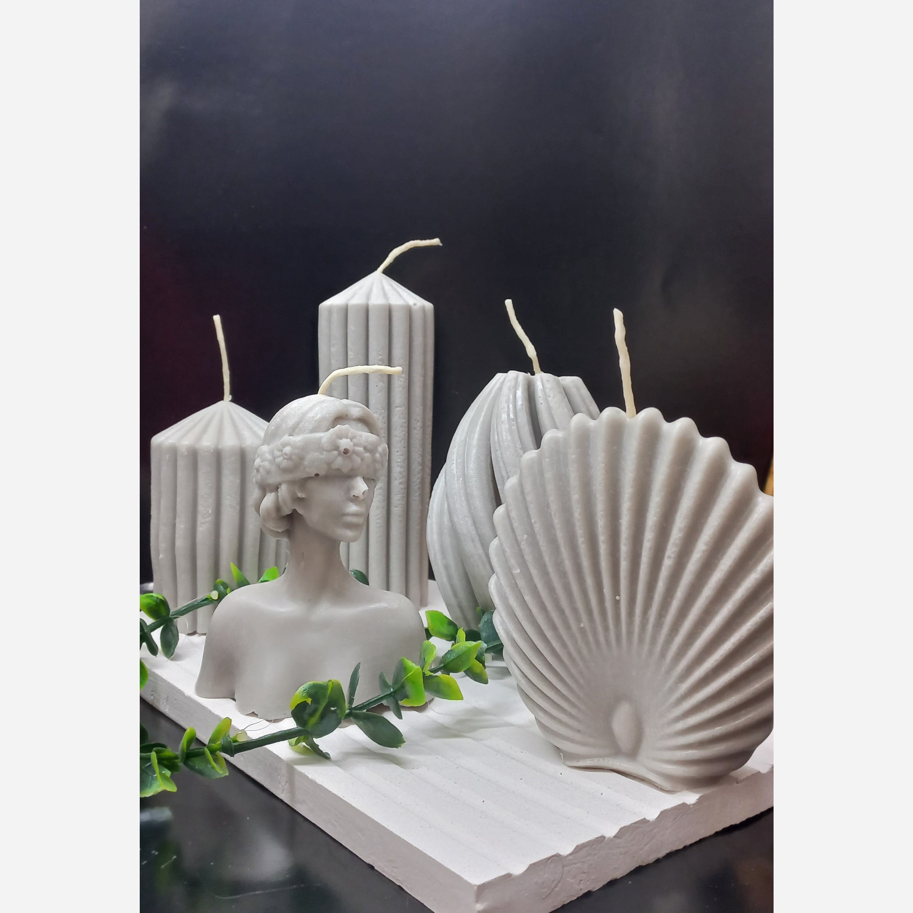 شمع پیچ 10 سانت شمع صدف 10 سانت استوانهای بزرگ 14 سانت استوانهای کوچک10 سانت شمع دختر 10 سانت