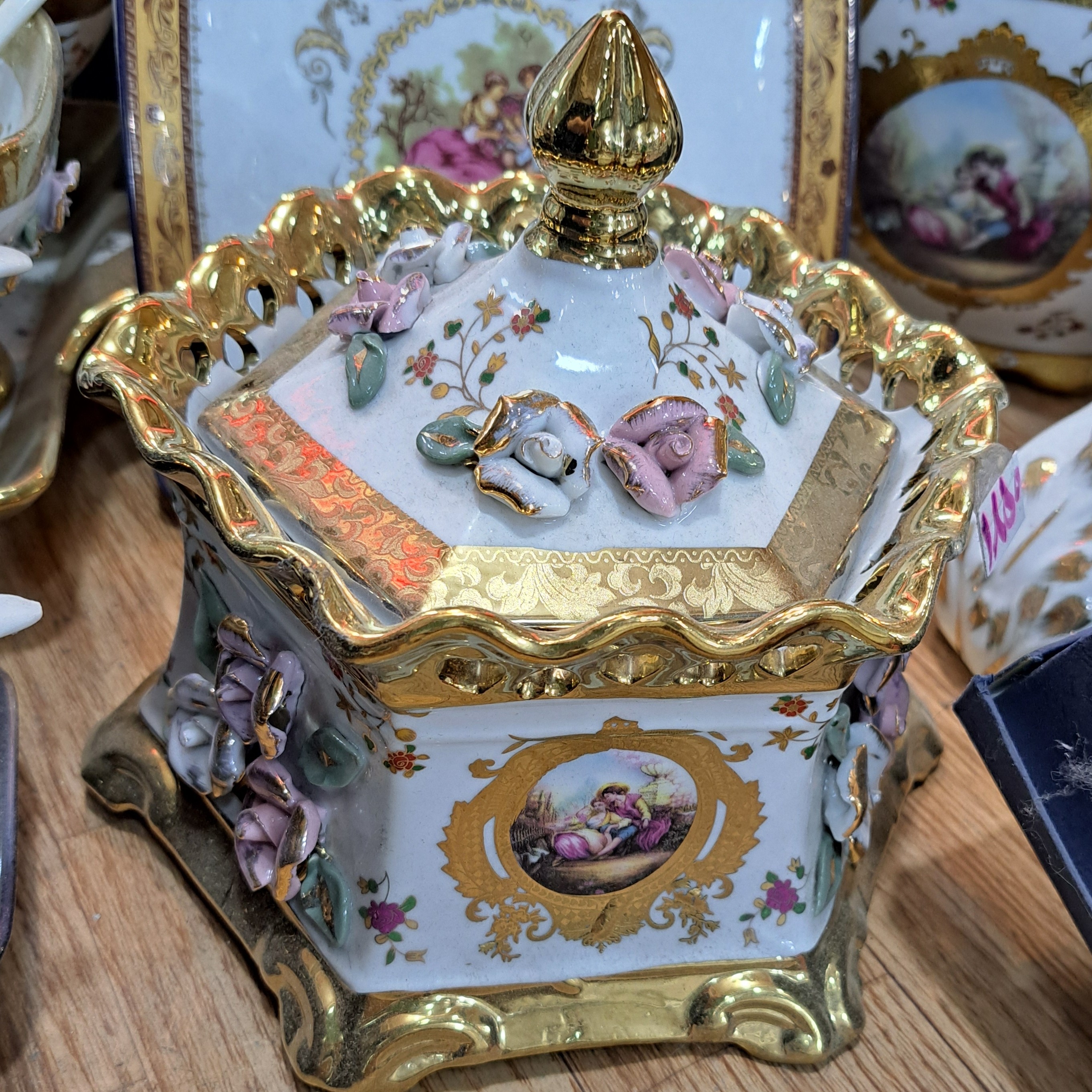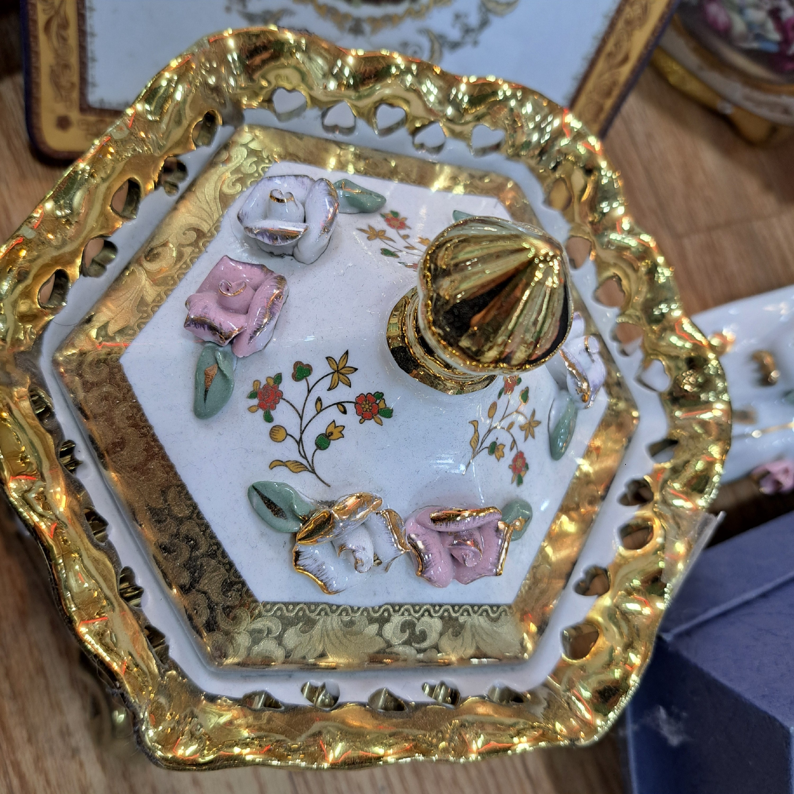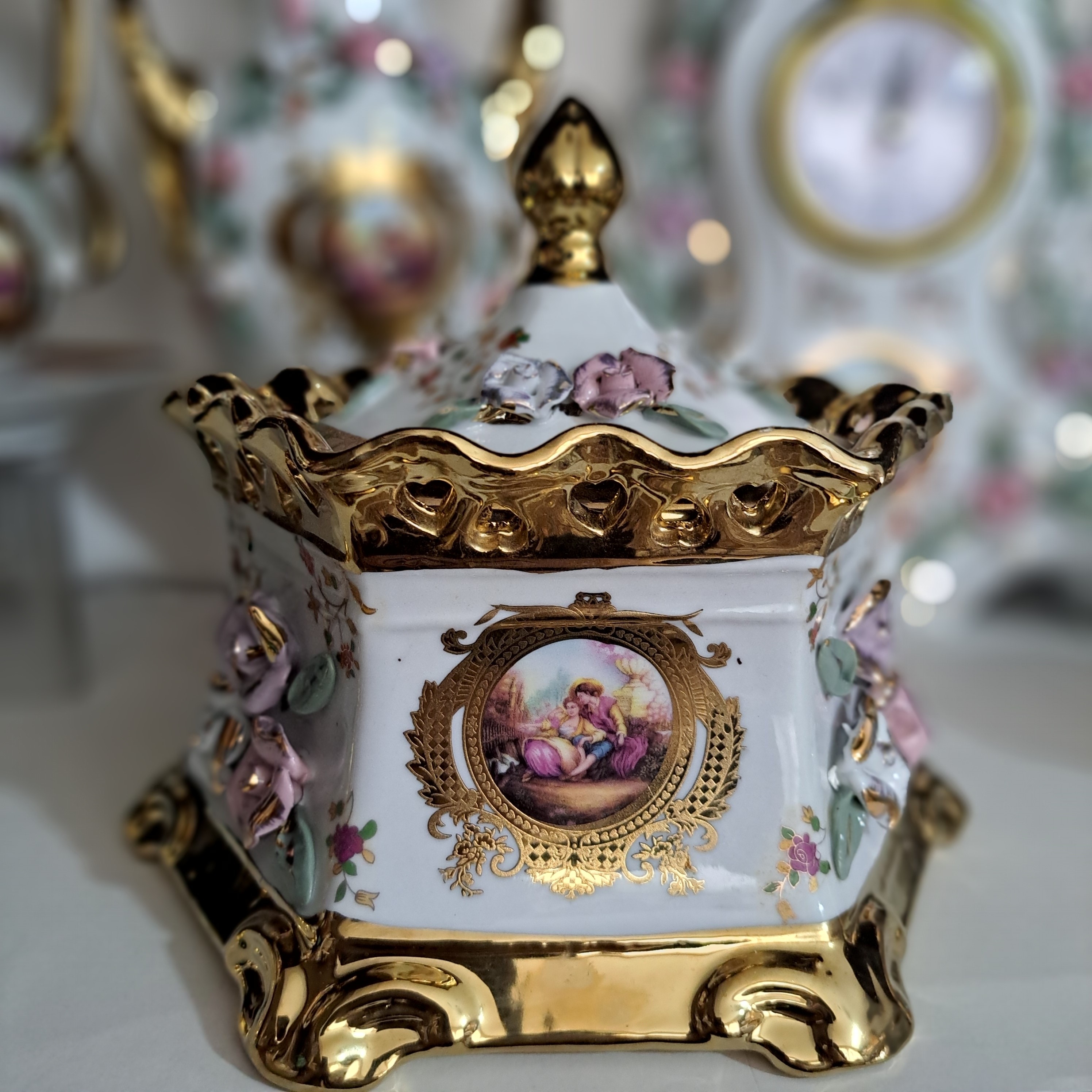 شکلات خوری درب دار طلاکوب گلدار رنگی رنگ گلبرجسته مناسب جهیزیه و کادویی عیدی ارسال مبلمونسرا مدل 295114