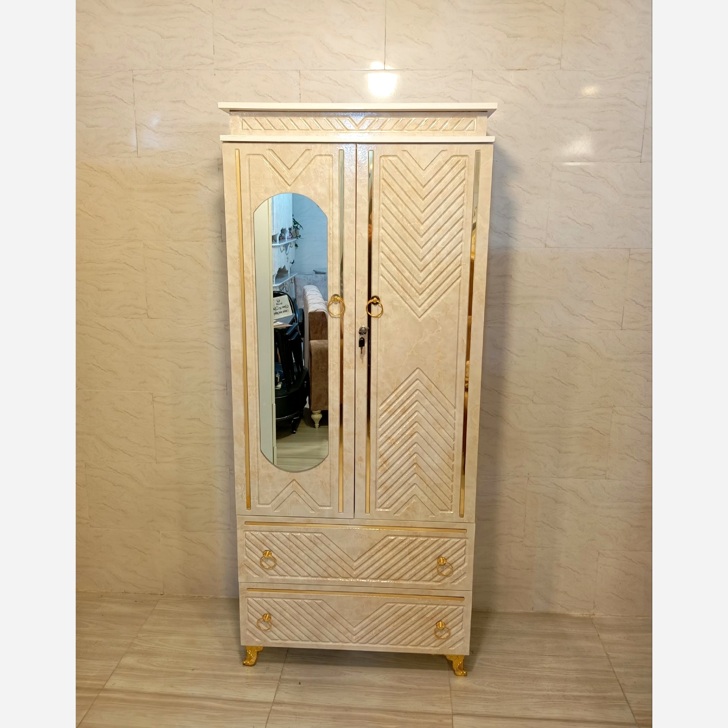 کمد لباس مدل هفتی رنگ کرم طرح سنگ وکیوم FRP هزینه ارسال با مشتری به کمترین قیمت همراه کادوی خرید گارانتی مبلمونسرا مدل 229619
