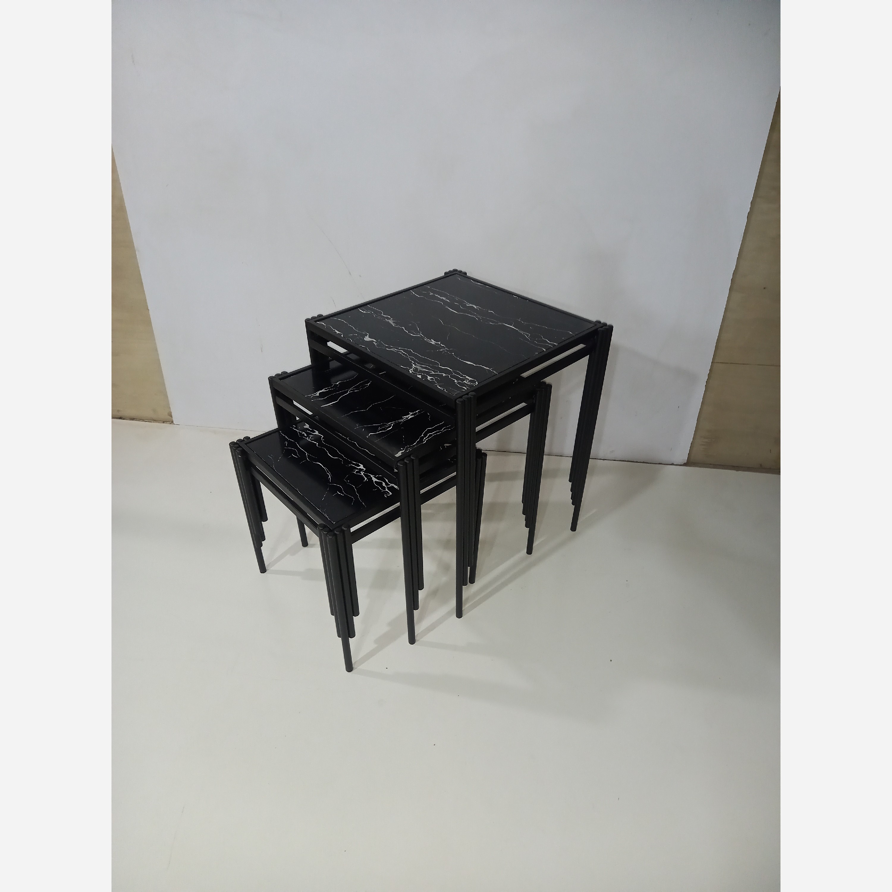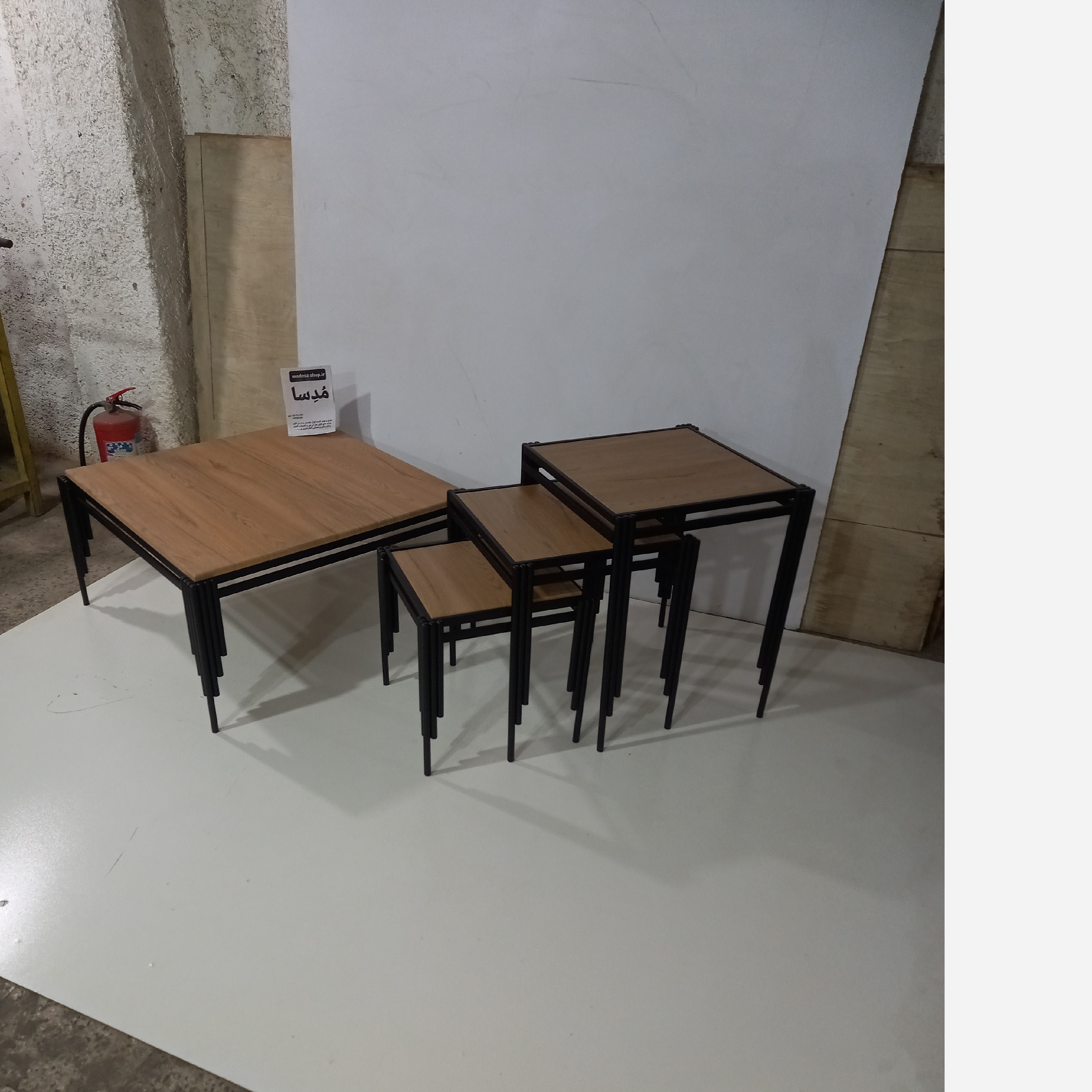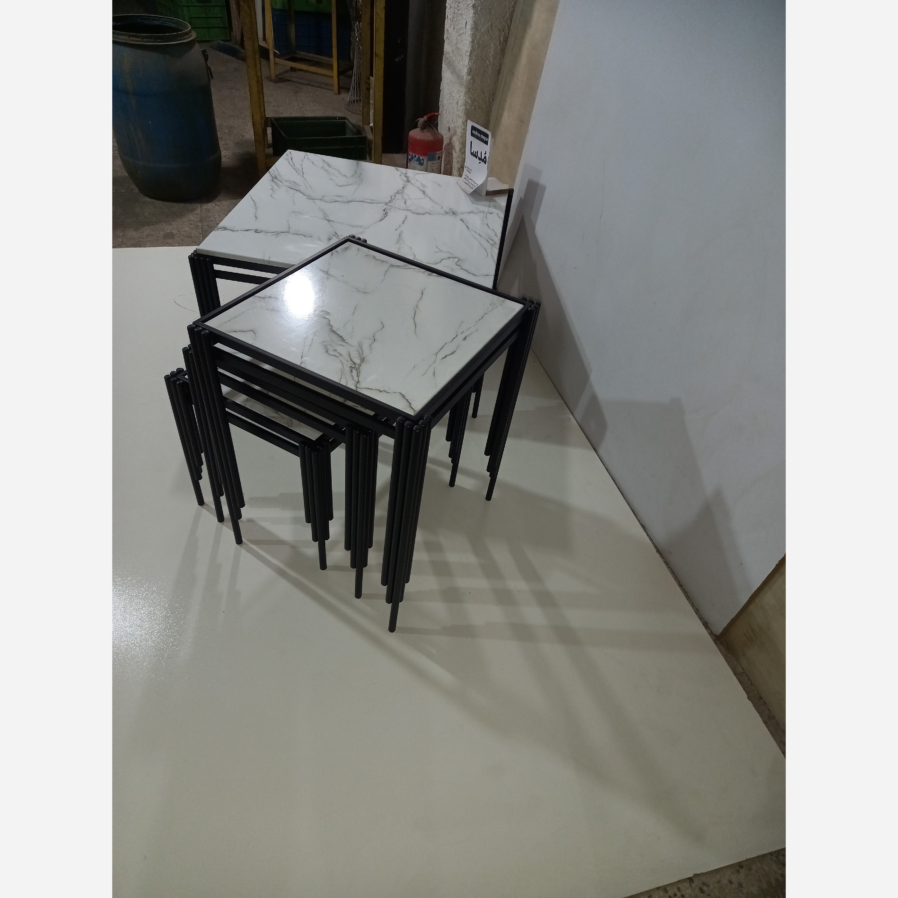 تولیدی . ارتفاع عسلی ها60 و55 و50 سانت. ارتفاع جلومبلی 50 سانت. اندازه صفحه عسلی ها37 در37و 42در42 و 47 در47سانت. اندازه صفحه جلومبلی 80 در80. رنگ کوره ای پودری الکترواستاتیک مشکی سوپر مات و قابل سفارش در رنگهای مشکی وسفید و توسی و طلایی . آبکاری فورتیک نیز قابل سفارش است که قیمت ان بالاتر است. صفحه رویه ام دی اف هایگلاس براق و قابل تغییر در رنگهای مختلف توسی و سفید و مشکی و....میباشد.