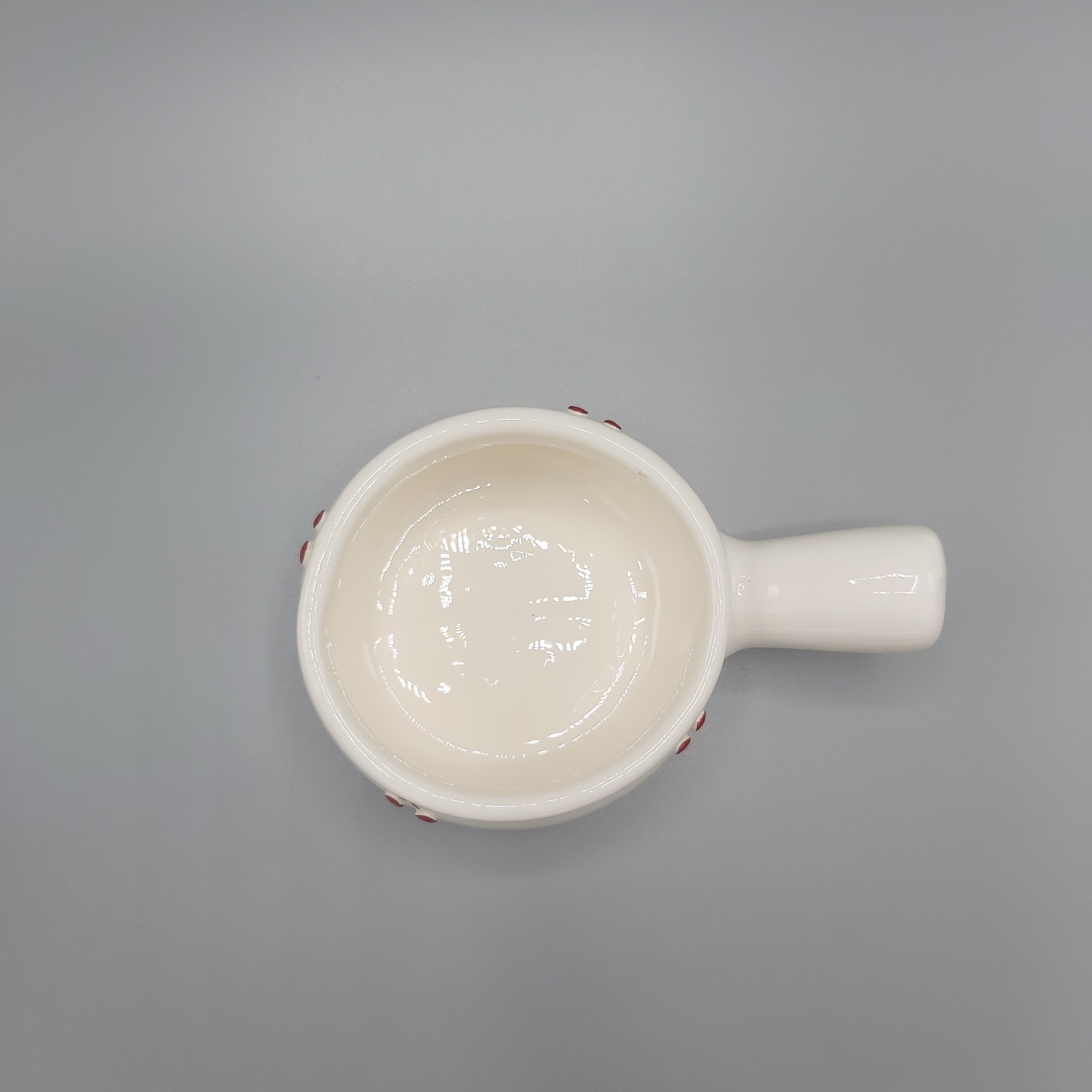 طرح آلبالویی برجسته و کار دست رنگ ثابت و زیر لعابی ابعاد: ارتفاع 6 سانت و قطر 10.5 سانت