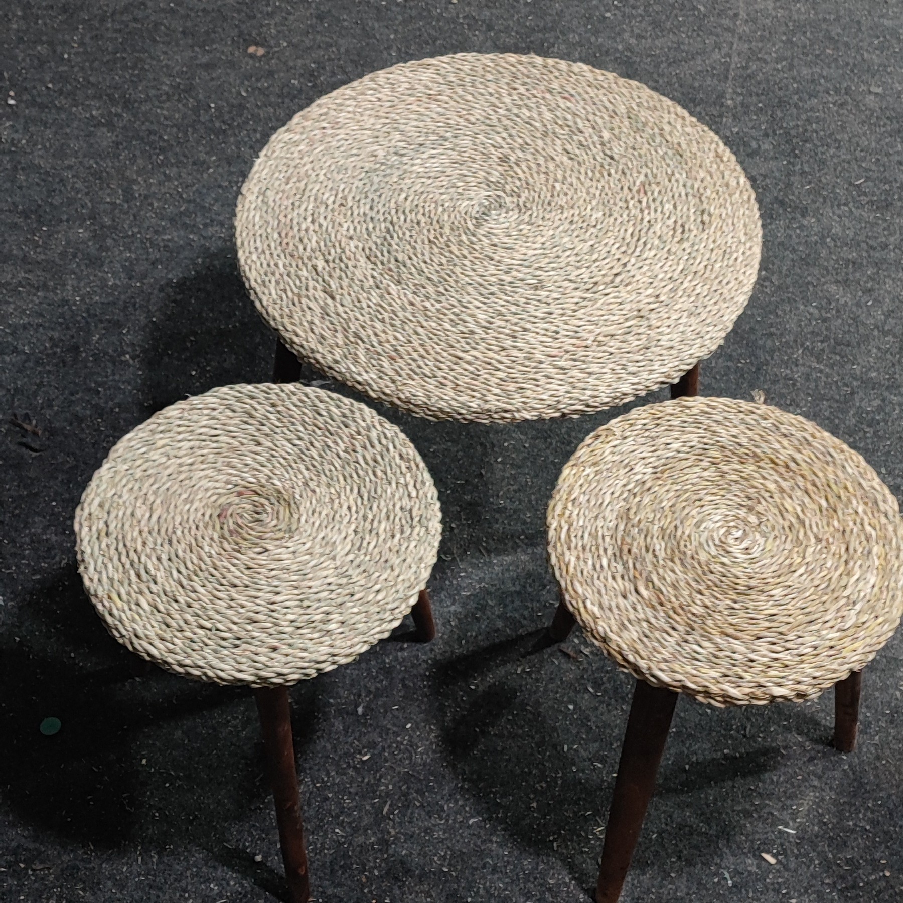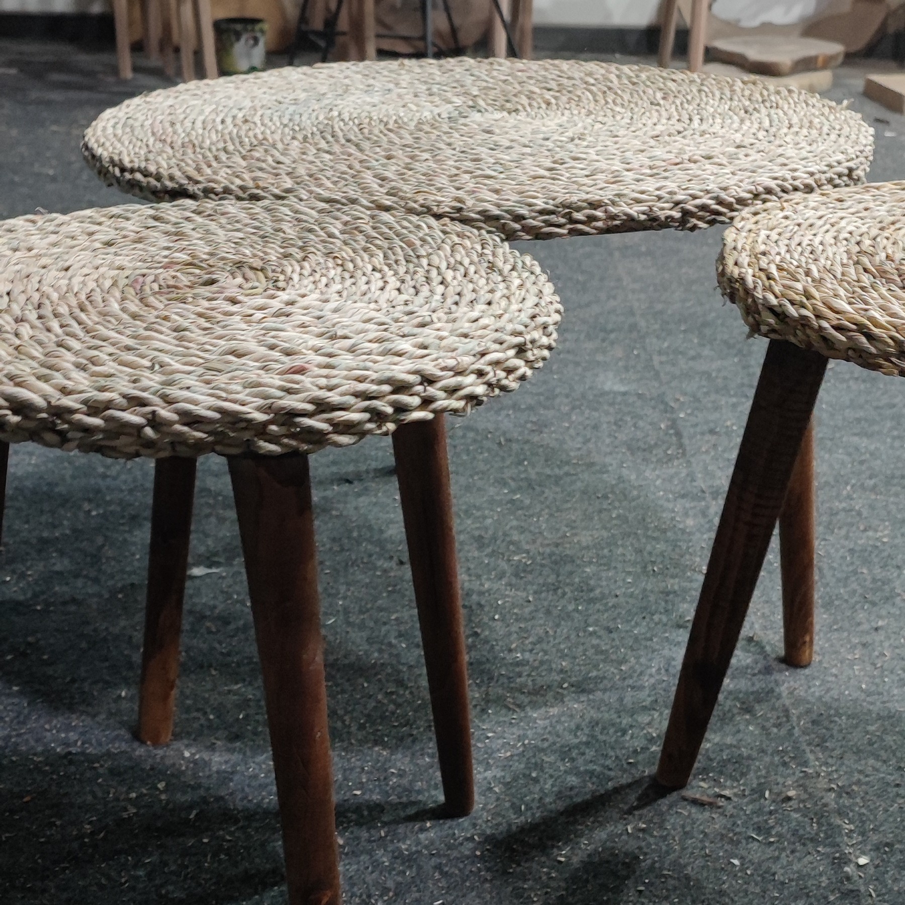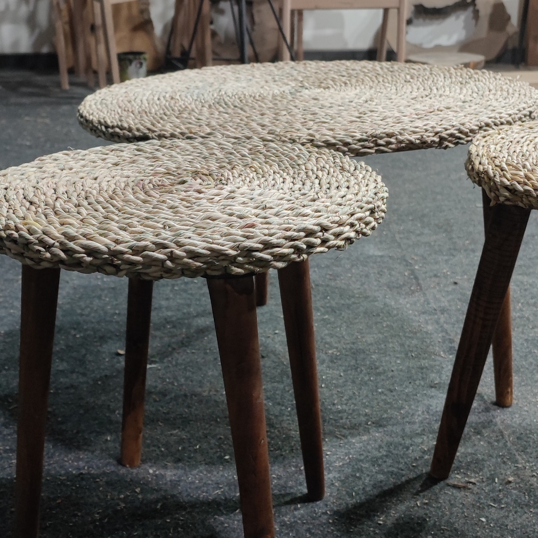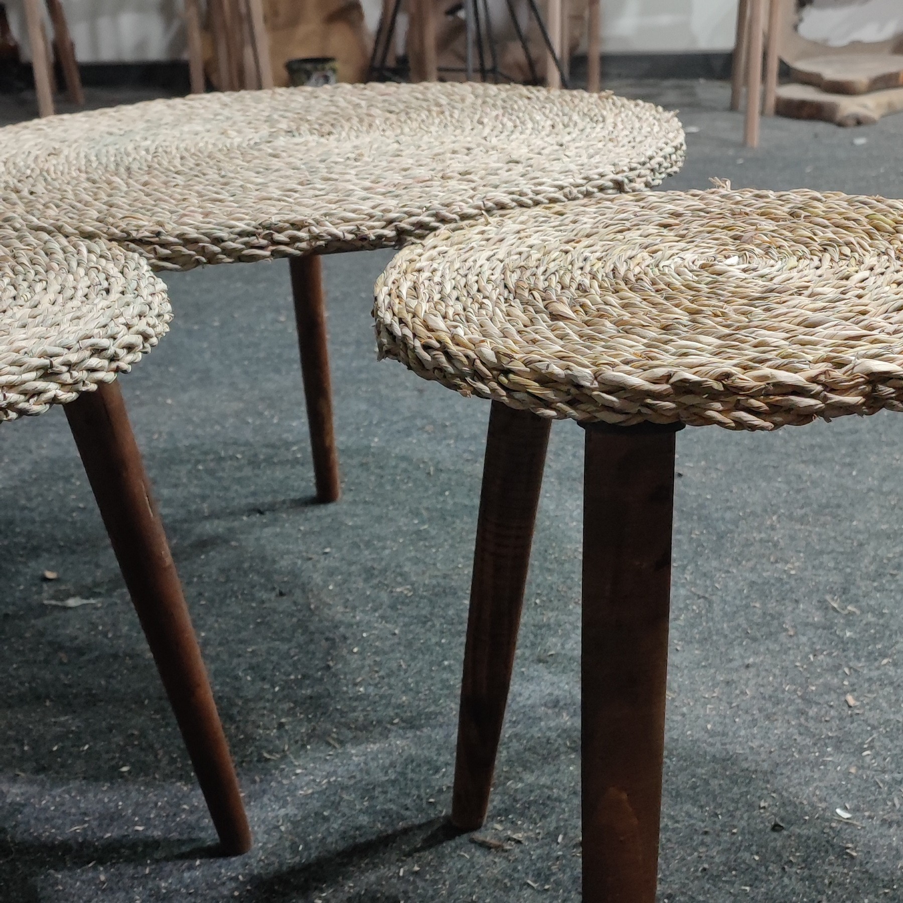 جلومبلی و عسلی حصیری با پایه ی خراطی شده قابل استفاده برای پذیرایی در تراس ، باغ ، حیاط