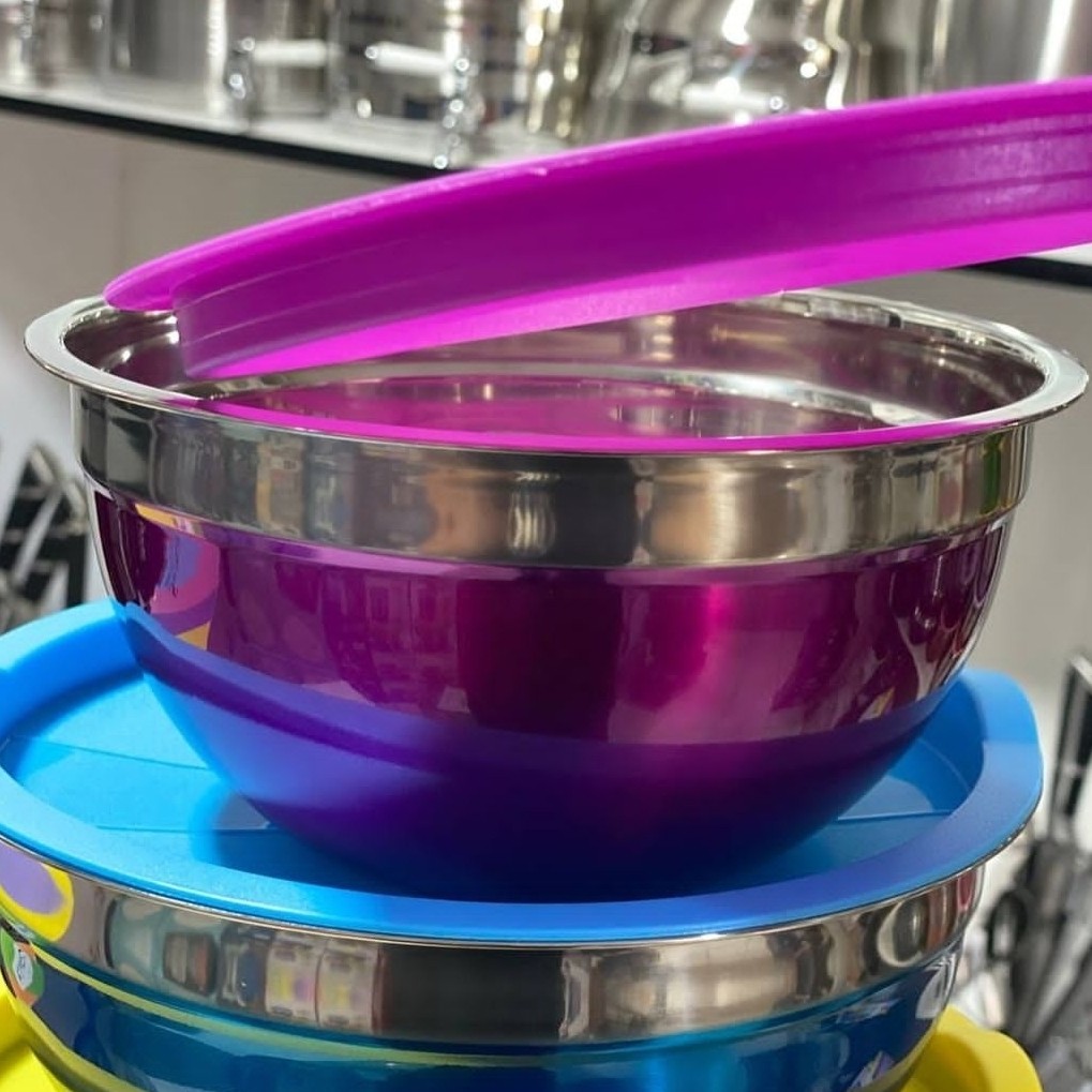 کاسه تمام استیل ضد زنگ آلمانی با درب پلاستیک ژله ای
