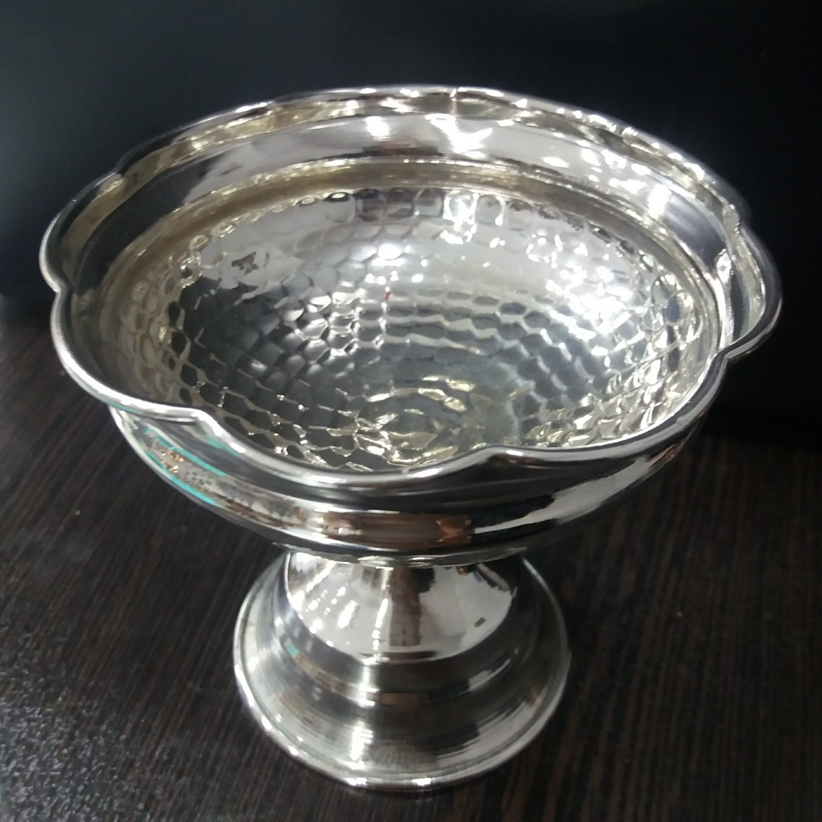 آجیل خوری کوچک تک نفره یا بستنی خوری پایه دار و نانو در رنگ اصلی و ثابت رنگ سفیدش کروم هست که رنگ ثابت و درخشندگی زیبا مناسب دکور خانه های ایرانی و پذیرایی مهمانی ها و دورهمی خرید مس هزینه نیست سرمایه و اصالت است دو مدل مسی و کروم