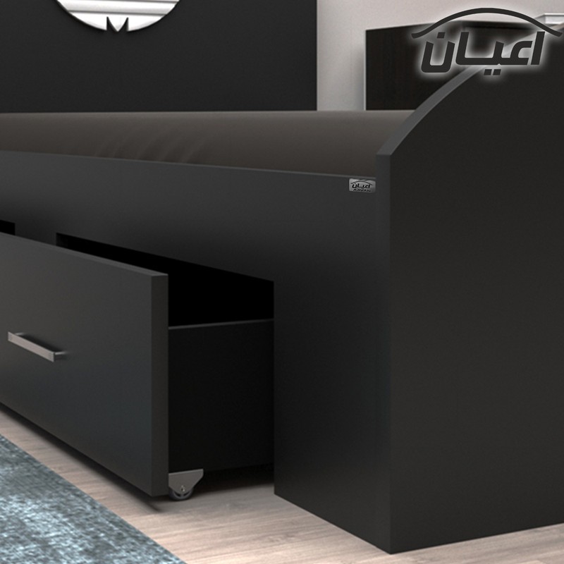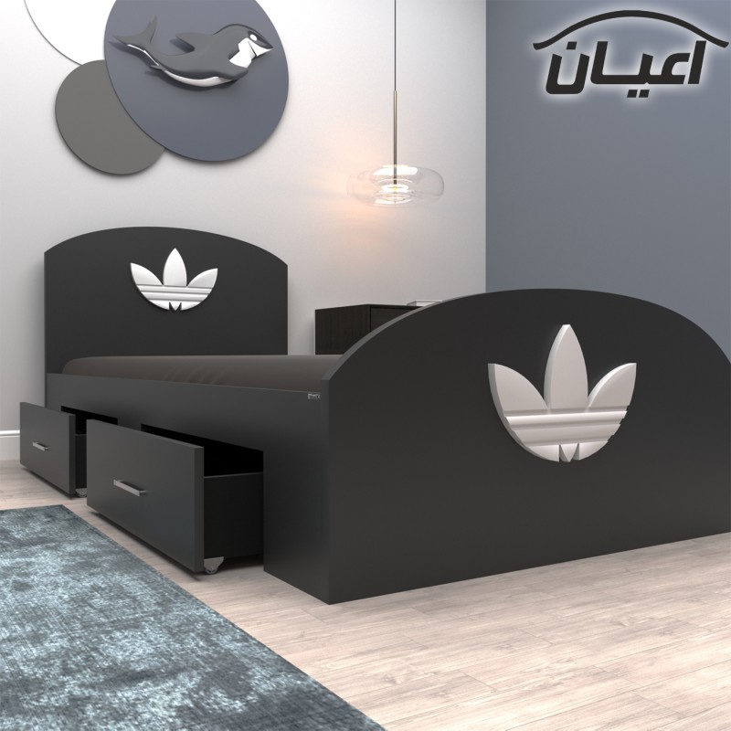تخت خواب یک نفره طرح اسپرت.جنس نئوپان ملامینه شرکتی.جنس لوگو روی تخت وکیوم می باشد در رنگبندی متنوع و در ابعاد استاندارد.کالا فاقد تشک می باشد جهت تهیه تشک،سایز استاندارد 200×120 سانت مناسب است.جنس کفی تخت نئوپان خام و به صورت دوتکه بوده که همراه با چند جفت فاق و زبانه به عنوان پایه در بسته بندی جداگانه ارسال می شود.تخت دارای دو کشو به صورت چرخدار است.کشوهای تختخواب امکان قرارگیری در سمت چپ یا راست را دارند. این محصول به صورت مونتاژ نشده در چهار بسته بندی همراه با بروشور راهنمای نصب با لوگو و برند ارسال می شود. این کالا توسط برند در رنگ های سفید/مشکی/قهوه ای/گردویی/قهوه ای روشن/قهوه ای تیره /طوسی و حالت چند رنگ که مشابه تصاویر آلبوم محصول تولید می شود .