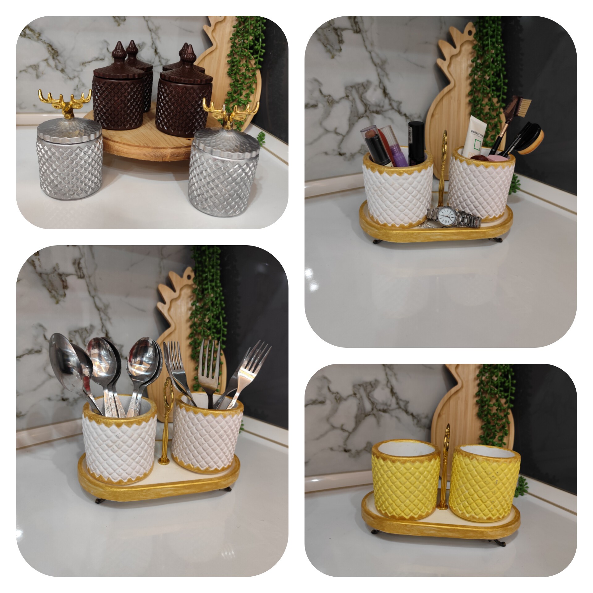 محصول بانکه سنگ مصنوعی ضد آب شده با رزین اپوکسی بهداشتی و بدون بو قابل استفاده برای مواد خشک خوراکی برای نظم دهنده کابینت برای نظم دهنده میز تحریر به صورت بدون در ارتفاع9 قطر 8 قیمت این محصول با رزین اپوکسی 85 قیمت محصول با ضد آب مات یا برای معمولی 45
