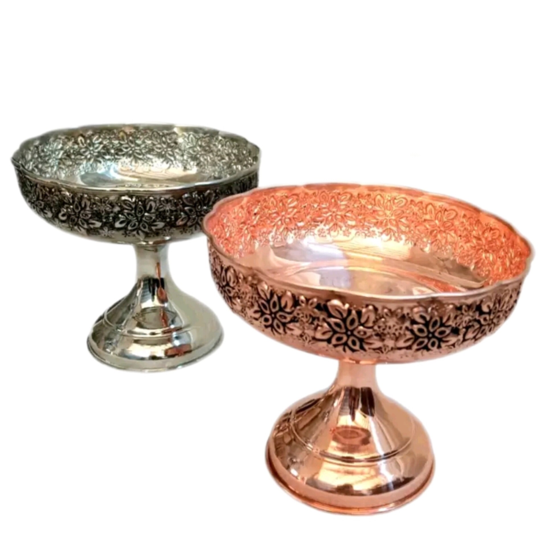 بستنی خوری مسی کروم گلبرگ سیاه قلم نانو شده قطر 12 ارتفاع 10