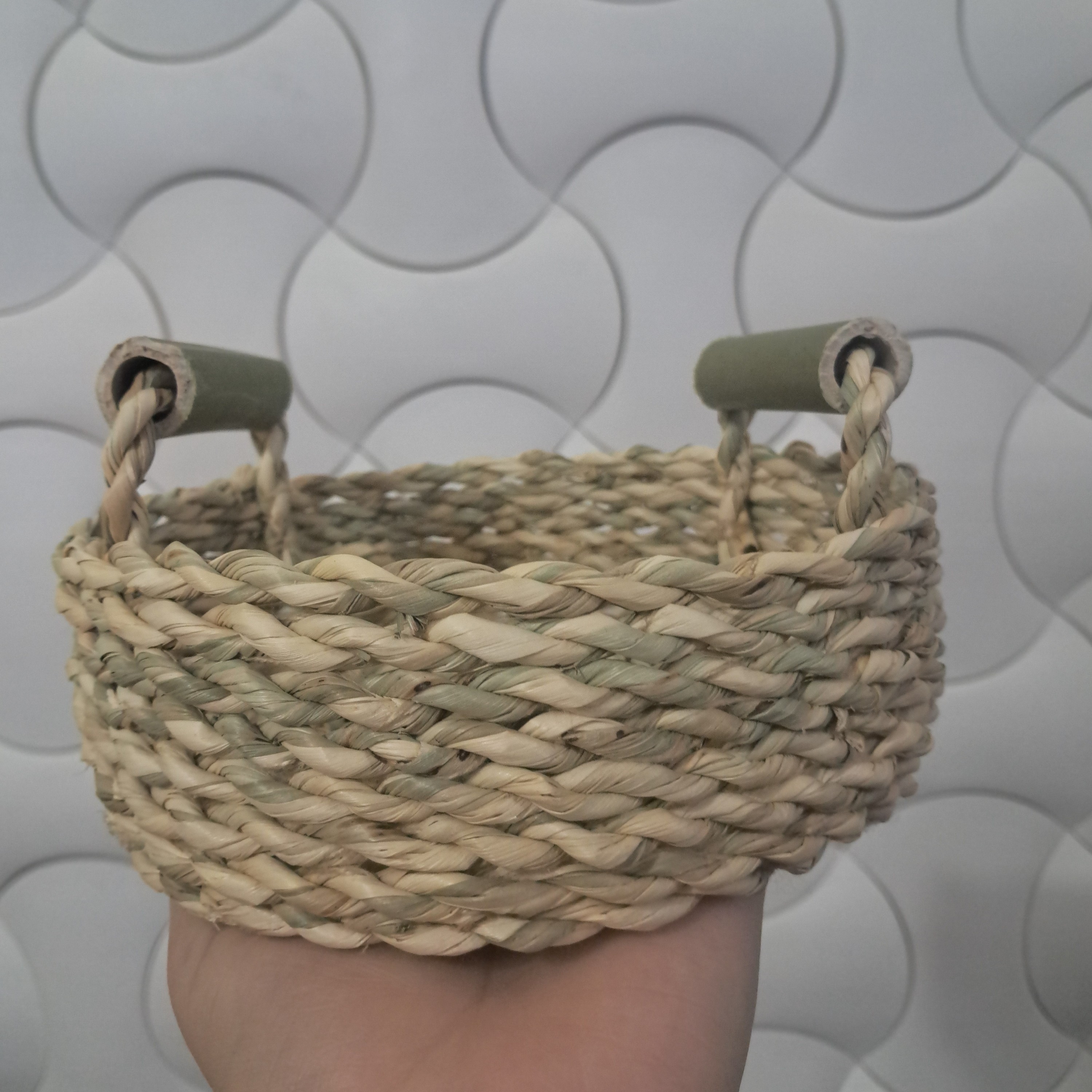 سبد حصیری دسته بامبو دوخت مخفی قطر 15سانت ارتفاع 6سانت مناسب پذیرایی،آجیل،شکلات،تنقلات و... غرفه *عرضه کننده ملزومات حصیری تک و عمده* دارای مدرک از : _فرهنگسرای گردشگری بوم اندیش _معاونت گردشگری اداره کل میراث فرهنگی،گردشگری و صنایع دستی گیلان _معاونت آموزشی جهاد دانشگاهی گیلان و مدیر اشتغال اداره کل تعاون،کار و رفاه اجتماعی