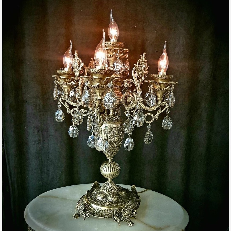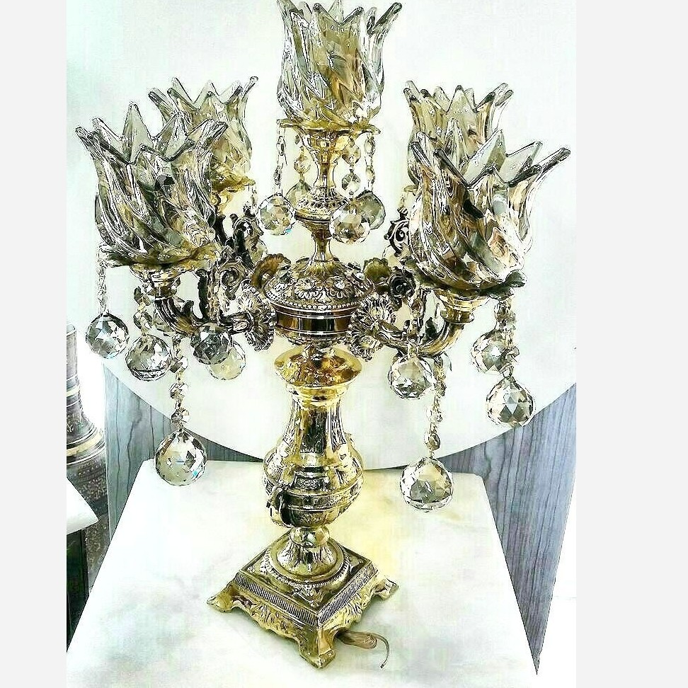 لوستر چلچراغ آباژور برنزی لوستر رومیزی برنز مبلمونسرا مدل 234527