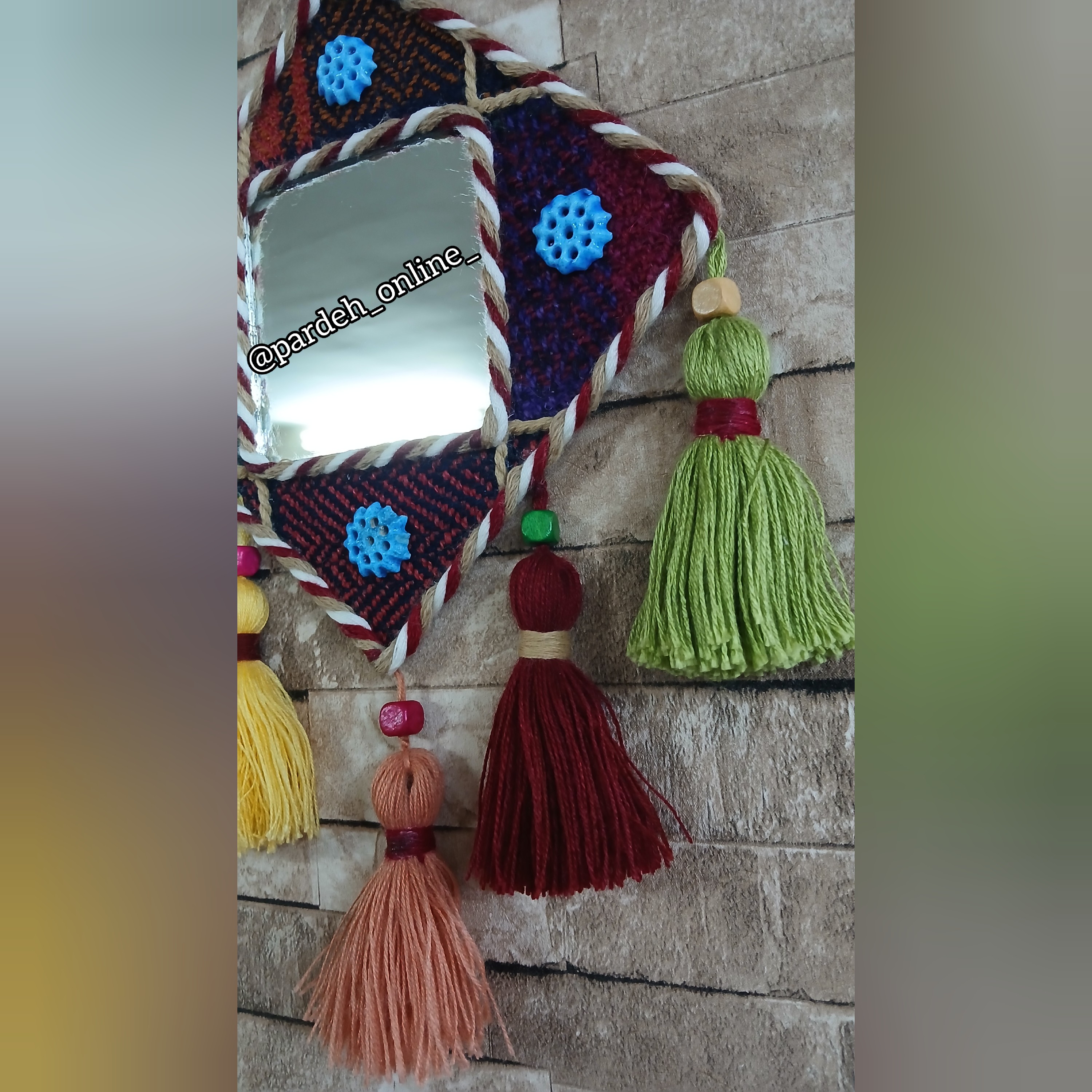 جاجیم بکار رفته دستبافت و از جنس پشم میباشد و ریسه و منگوله ها کار دست هستند که با رنگ بکار رفته در جاجیم ها ست شده ، بسیار زیبا و خاص در 4 سایز 16×16سانت 160 هزار تومان 18×18سانت 1ث 190 هزار تومان 20×20سانت 220 هزار تومان 22×22سانت 250 هزار تومان لطفا قبل از ثبت سفارش تماس بفرمایید