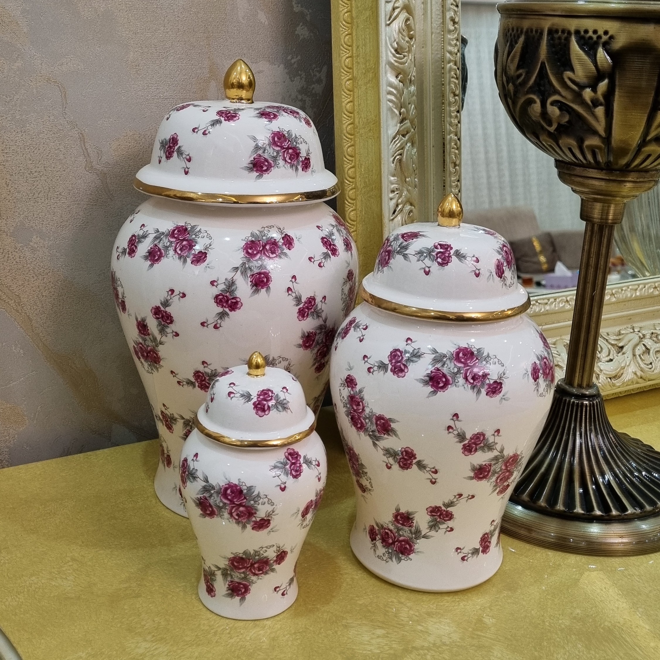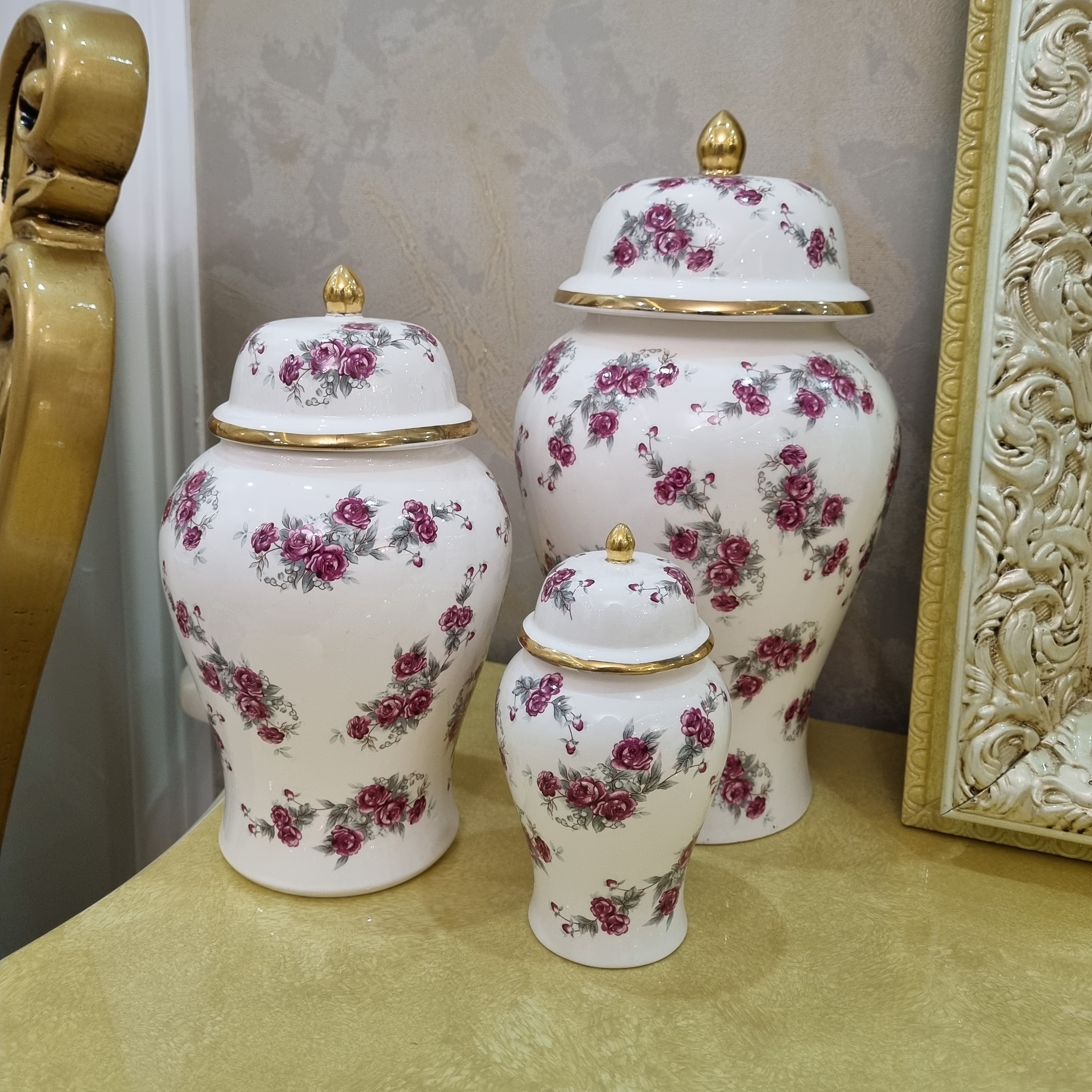 ست سه تایی جینجرجار طرح گل سرخ مبلمونسرا مدل 272605