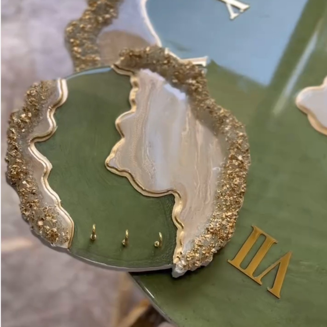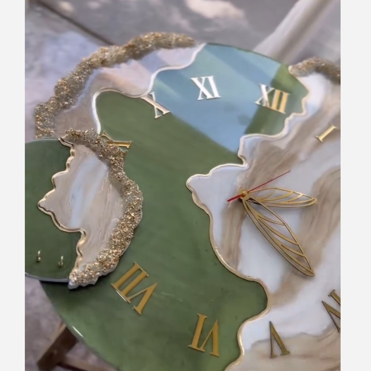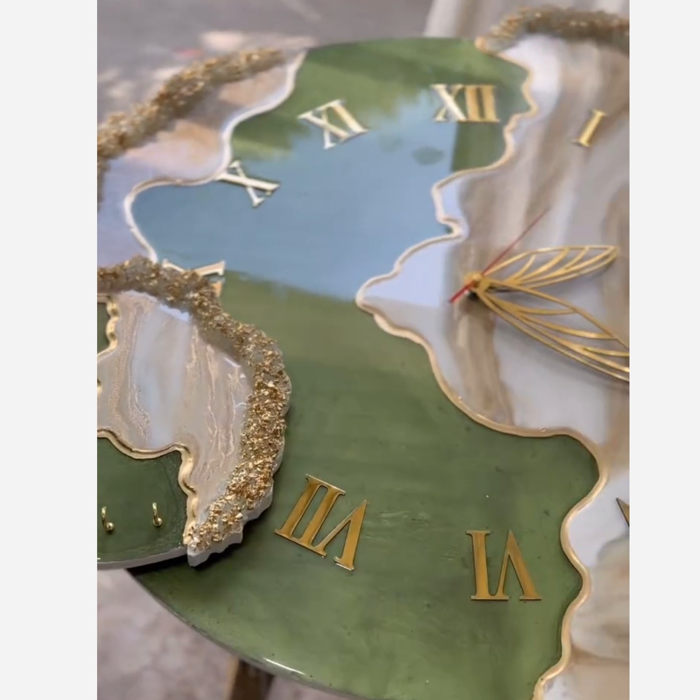 ساعت دیواری رزینی طرح دفرمه زیبا .سایز 60سانت با موتور آرامگرد همراه با جاکلیدی
