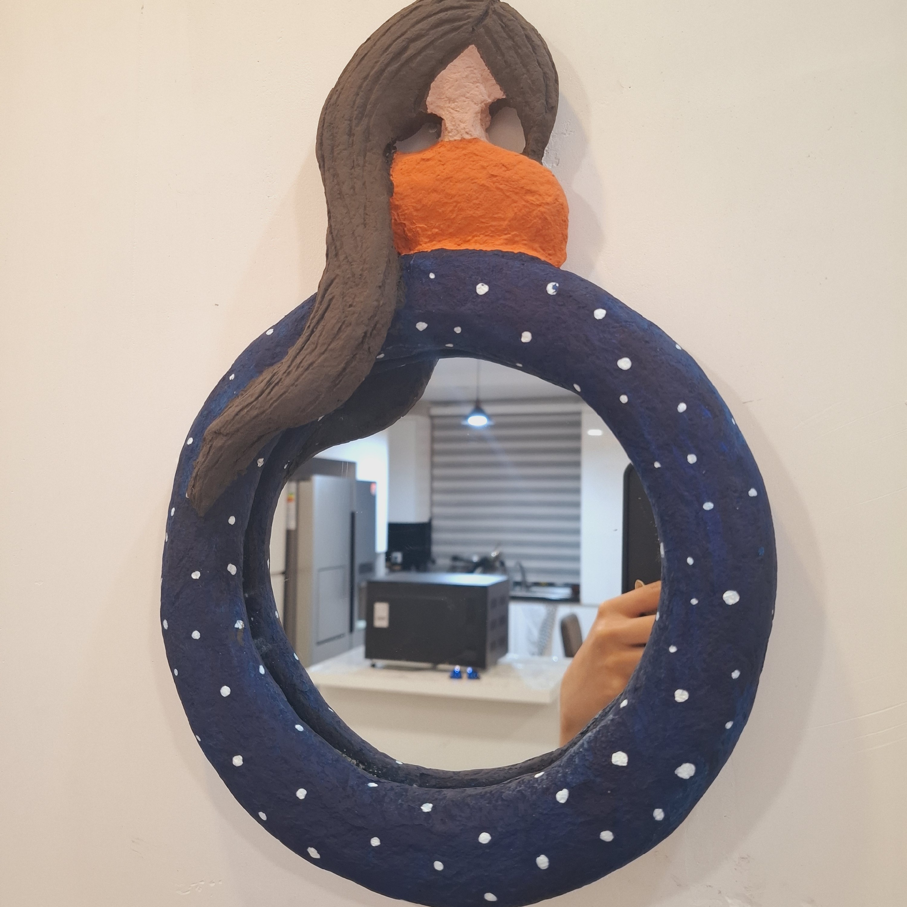 آینه جنس پاپیه ماشه طرح دخترک قابل ساخت باهر ابعادی